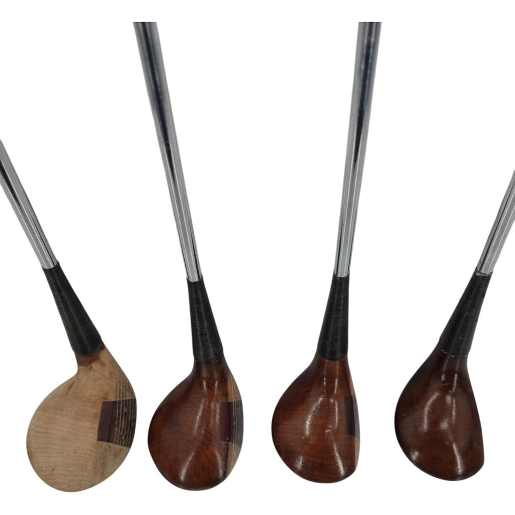 The Titleist Persimmon 1 3 4 5 Wood Golf Club Bundle features a set of four right-handed fairway woods with a stiff steel shaft and Nike grip. These clubs are designed for mid-high launch and spin with a mid kickpoint, making them ideal for players looking for consistent and reliable performance on the course. The multicolor clubs have a 4.5° torque and come in lofts of 10° and 20°, perfect for achieving long and accurate shots from the fairway or tee. With their high-quality construction and renowned Titleist brand, these woods are a great addition to any golfer's bag.
