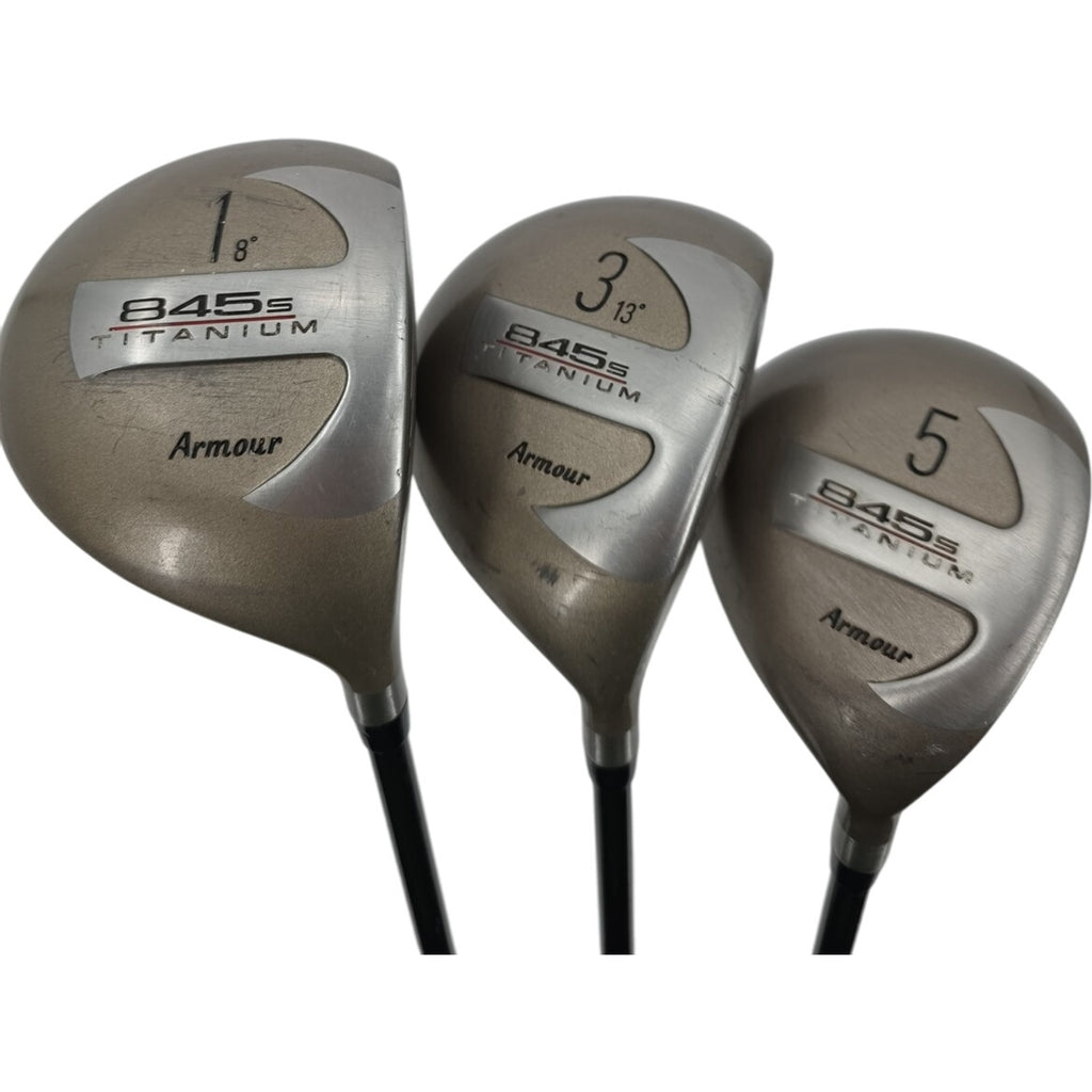 The Tommy Armour 845S Titanium Driver 3 And 5 Fairway Woods Golf Club Bundle is a set of premium golf clubs designed for right-handed male golfers. Featuring a sleek black lie angle color and high-quality titanium head material, these clubs offer superior performance and durability on the golf course. The stiff graphite shafts provide the necessary flex for long-distance shots, making them ideal for players seeking greater accuracy and control in their shots. With the trusted Tommy Armour brand and standard lie angle, this bundle is a top choice for golf enthusiasts looking to enhance their game.