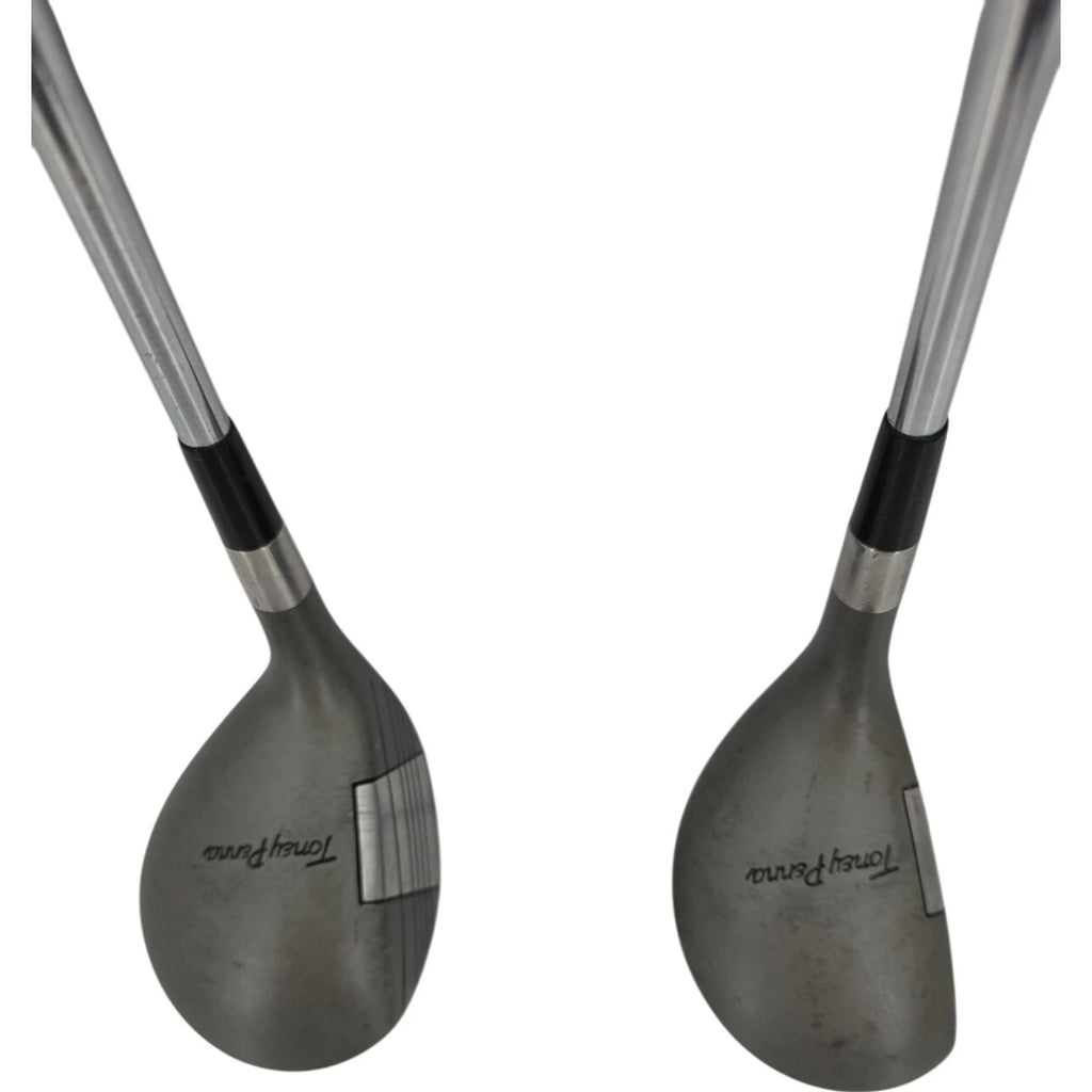 The Toney Penna Mod 2 15 Degree Loft 3 Wood and 21 Degree 5 Wood Golf Club Bundle is a set of two fairway woods designed for right-handed male golfers. Made by the brand Toney Penna in the United States, these silver clubs feature steel shafts and standard lie angles. With a personalized option of "No", this bundle offers quality and performance for any golf enthusiast looking to enhance their game on the fairway.