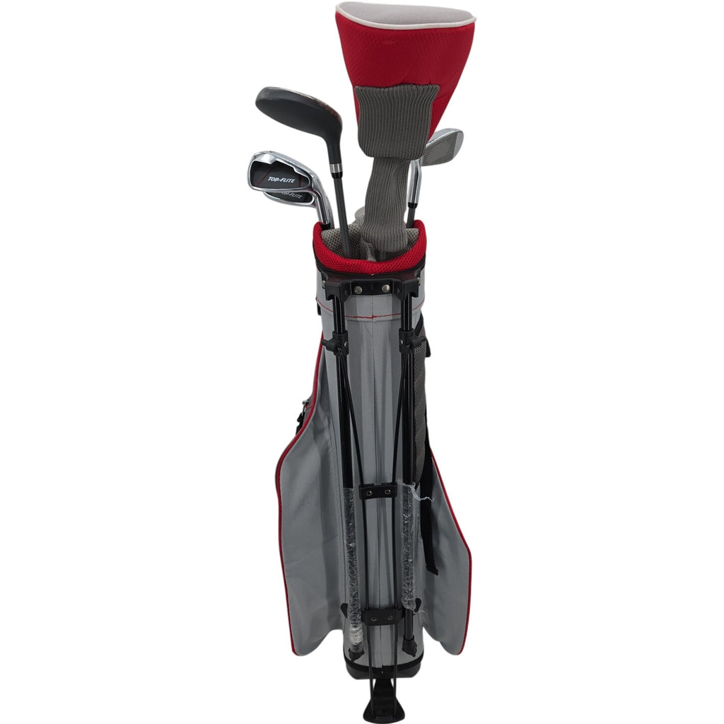 The Top Flite Junior RH Golf Set is a high-quality golf set designed for young players. Featuring a sleek blue design, this set includes 6 clubs with junior flex graphite shafts for optimal performance. The set includes a hybrid, putter, iron, wedge, and iron set, making it versatile for various shots on the golf course. The original grips and bag add to the overall value and convenience of this golf set, making it an ideal choice for unisex kids looking to improve their game. Made in the United States, this youth-oriented golf set offers a standard lie angle for consistent shots.