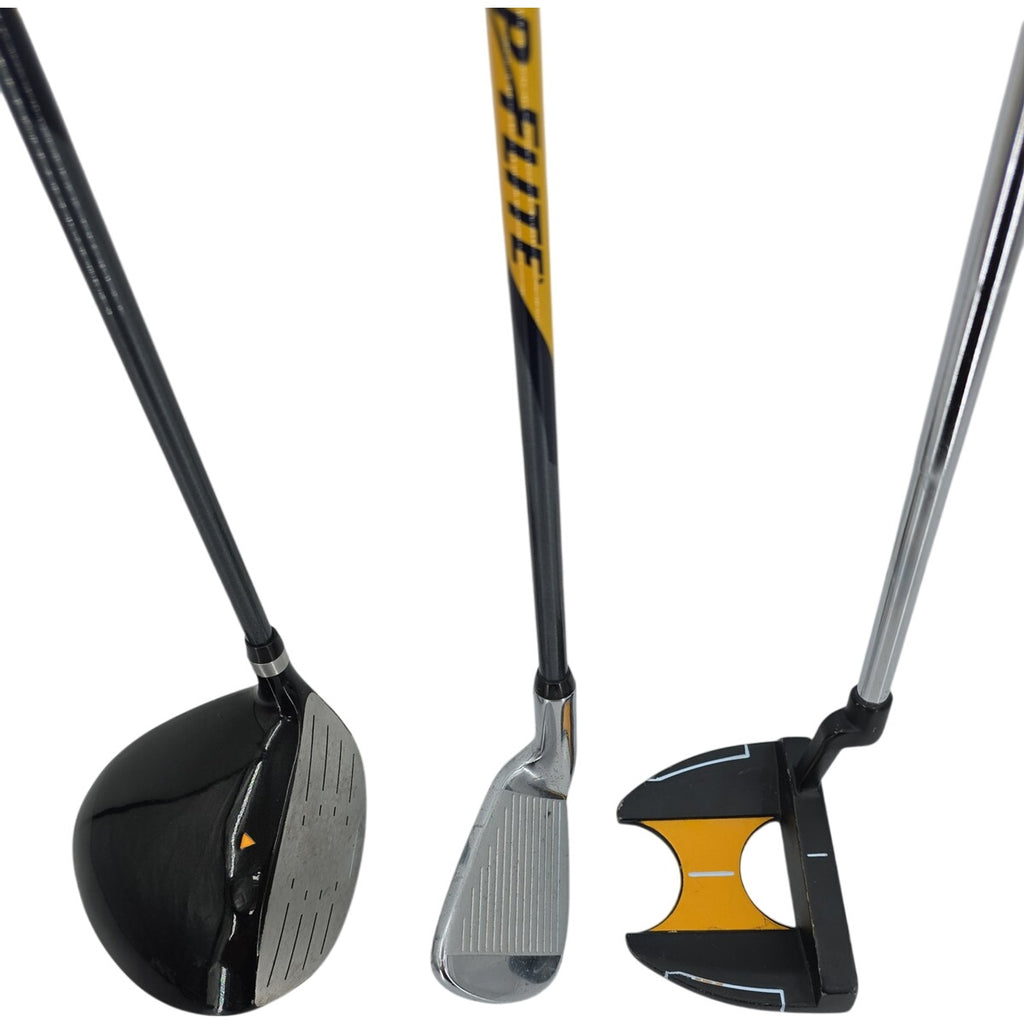 The Top Flite XLj Junior 5-pc Golf Club and Bag Set is designed specifically for young golfers who are right-handed players. The stainless steel heads and graphite shafts provide durability and flexibility, perfect for youth players. This set includes everything a junior golfer needs to get started, including a bag to carry their clubs. The Top Flite brand is known for producing high-quality and affordable golf equipment, making this set a great choice for young golfers looking to improve their game.
