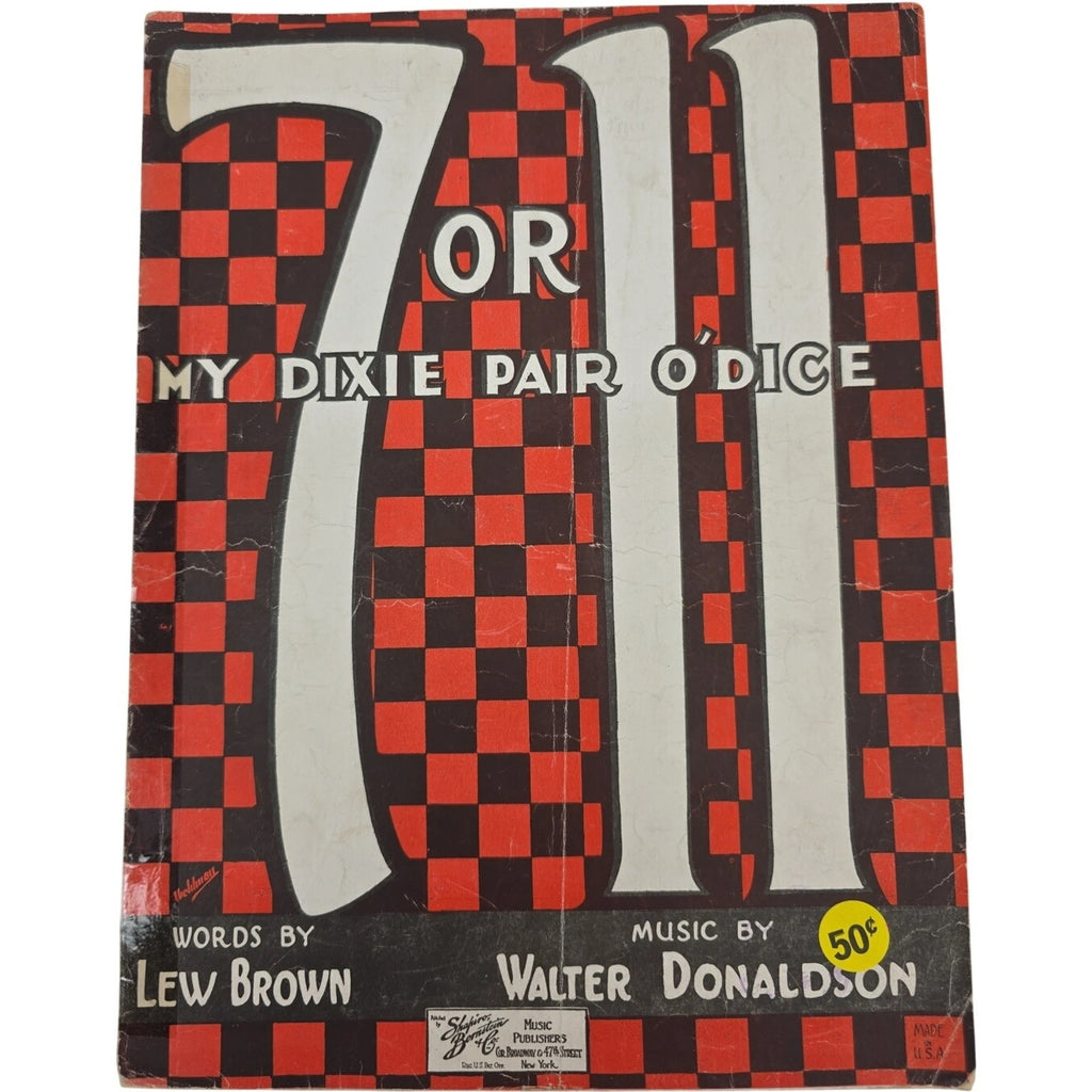 The product is a vintage 1923 sheet music titled "7 or 11 My Dixie Pair o Dice" by Brown & Donaldson. It features a jazz genre and is designed for piano players at an intermediate level. Published by Shapiro Bernstein & Co. Inc in the United States, this sheet music showcases the unique style and composition of music from the early 20th century, offering musicians a glimpse into the musical landscape of that era.