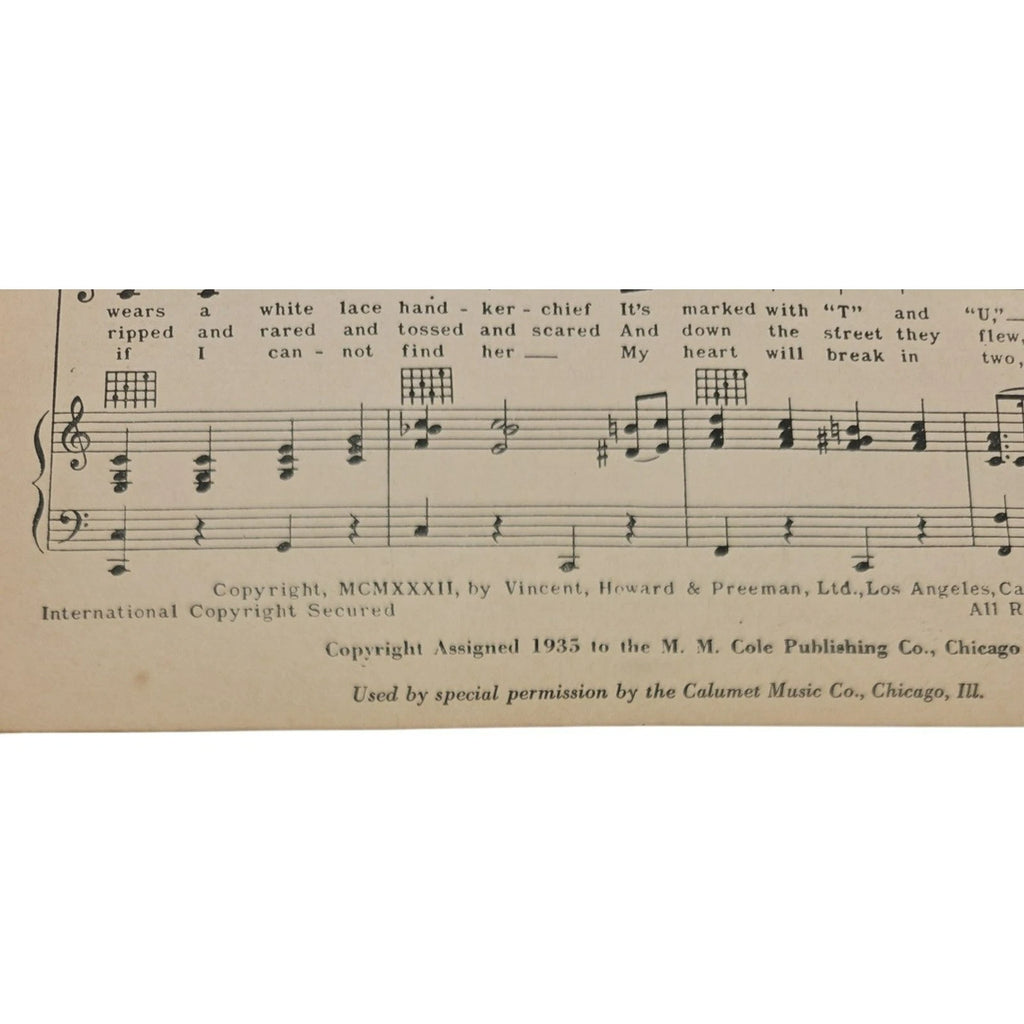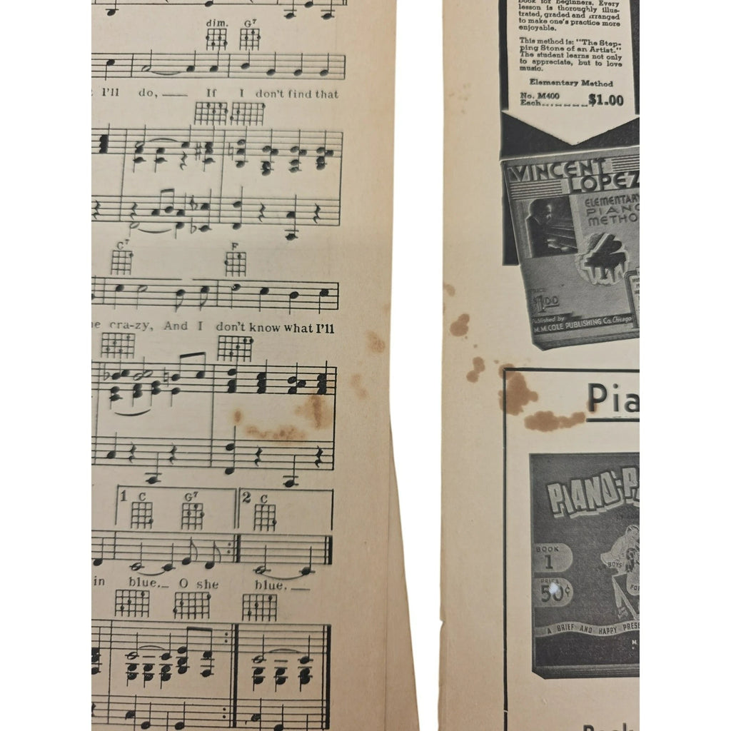 This vintage 1935 sheet music, "The Little Girl Dressed In Blue" piano by F N Vinard, is a rare find for music enthusiasts and collectors. Published by Calumet Music Co in the United States, this sheet music features a duo ensemble with guitar, piano, and ukulele instruments in the genre of Musicals. With an intermediate experience level, this unique and classic piece of sheet music offers a glimpse into the musical landscape of the past for those looking to recreate or experience the vintage charm of this timeless song.