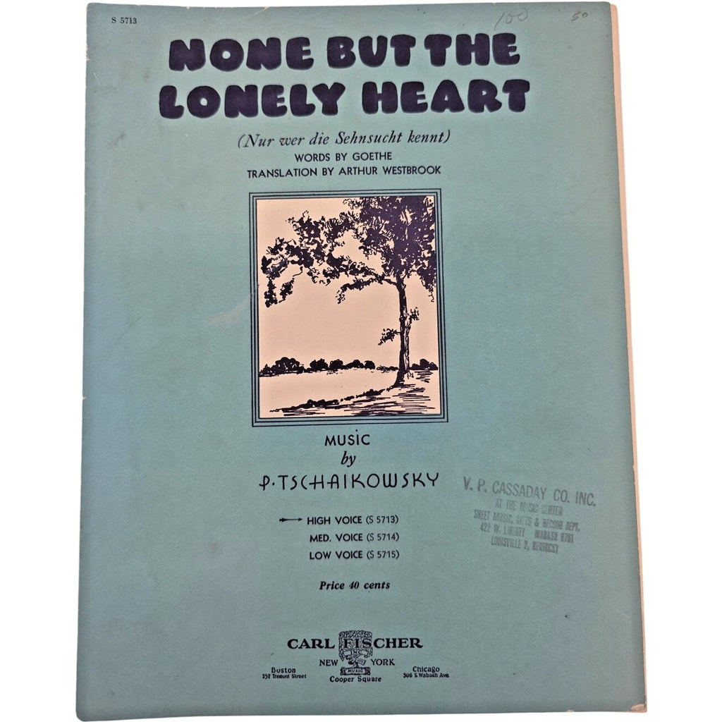 The product is a vintage 1940 sheet music for the song "None But the Lonely Heart" published by Carl Fischer, Inc. It falls under the genre of Musicals and is a single unit. This piece of sheet music would be a valuable addition for collectors or musicians interested in musical memorabilia from the mid-20th century.