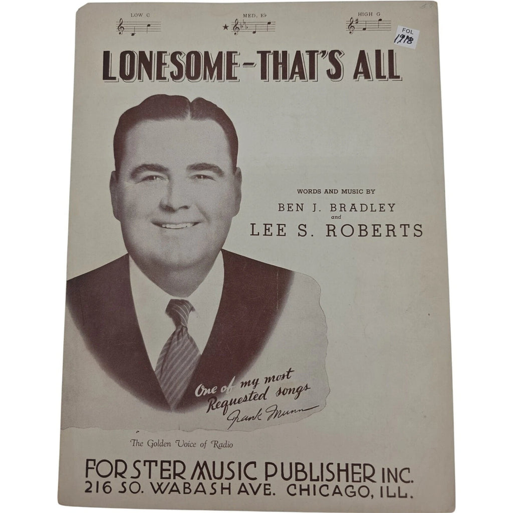 This vintage 1942 sheet music for the songs "Lonesome" and "That's All" by Ben J. Bradley and Lee S. Roberts is a rare find for music enthusiasts. Featuring a piano solo and suitable for intermediate level players, this sheet music is perfect for those interested in playing classic pop and musical scores from the United States. Published by Forster Music, this piece captures the essence of the era and offers a unique addition to any musician's collection.