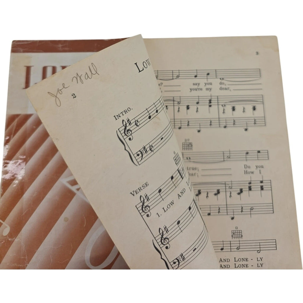 This vintage 1942 sheet music for "Low And Lonely" by Floyd Jenkins features a duet with Roy Acuff. The sheet music is in the format of both acoustic guitar and piano, making it suitable for intermediate level musicians. Published by Acuff-Rose Publications in the United States, this piece is a rare find from the 1940s, perfect for fans of vintage music and musical memorabilia.