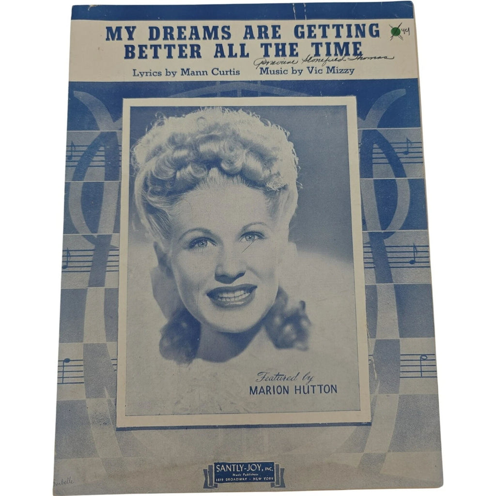 This vintage 1944 sheet music for the song "My Dreams Are Getting Better All The Time" by Mann Curtis is a rare find for collectors and musicians alike. Published by Santly-Joy Inc. in the United States, this advanced level sheet music is specifically designed for piano and voice instruments. With a focus on musicals, this piece offers a glimpse into the music of the mid-20th century and provides a unique opportunity to perform a classic tune from the past.