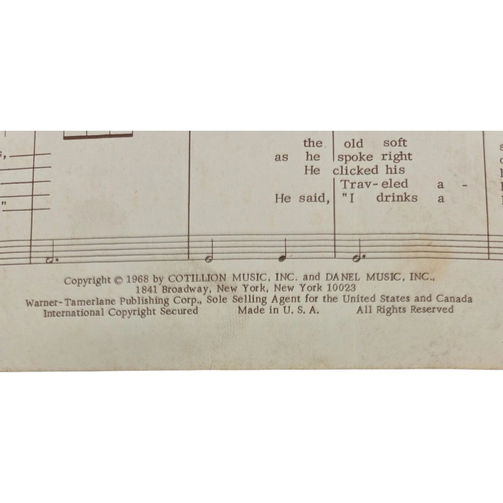 This product is a vintage 1968 sheet music for the song "Mr. Bojangles" by Jerry Jeff Walker. It is suitable for piano and acoustic guitar players, with an experience level of intermediate. Published by Cotillion Music in the United States, this sheet music falls under the genres of musicals and country music. This collectible item allows musicians to play a classic song from the late 1960s on their chosen instrument.