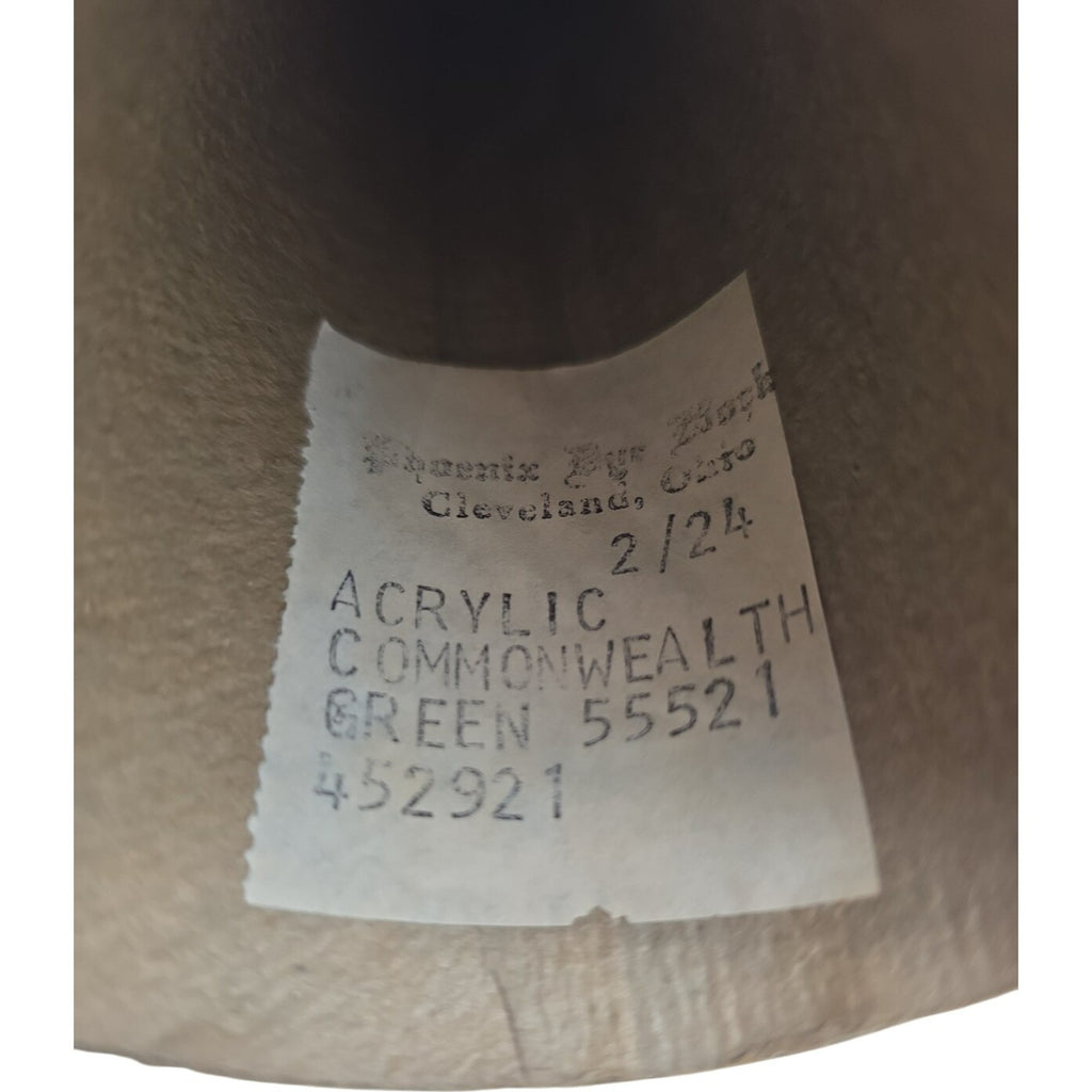 The Vintage 1980s Phoenix Dye Works 2/24 Commonwealth Green 55521 Cone Yarn Lot of 4 is a set of four cones of acrylic yarn in a lovely green color. This vintage yarn is perfect for crafts and projects that require a unique and nostalgic touch. The cones are easy to work with and suitable for a variety of creative endeavors, making this lot a valuable addition to any crafter's stockpile.