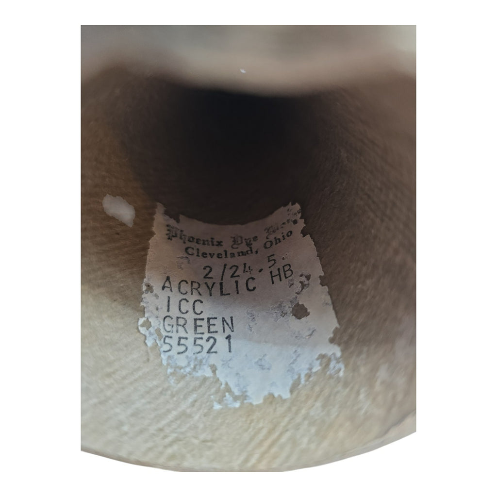 This product is a vintage acrylic yarn cone from the 1980s by Phoenix Dye Works, known for its vibrant green color. Made in the United States, this unit of yarn is perfect for crafters and knitters looking for a unique and stylish addition to their projects. The cone format allows for easy handling and use, making it a versatile and classic choice for various crafting needs.
