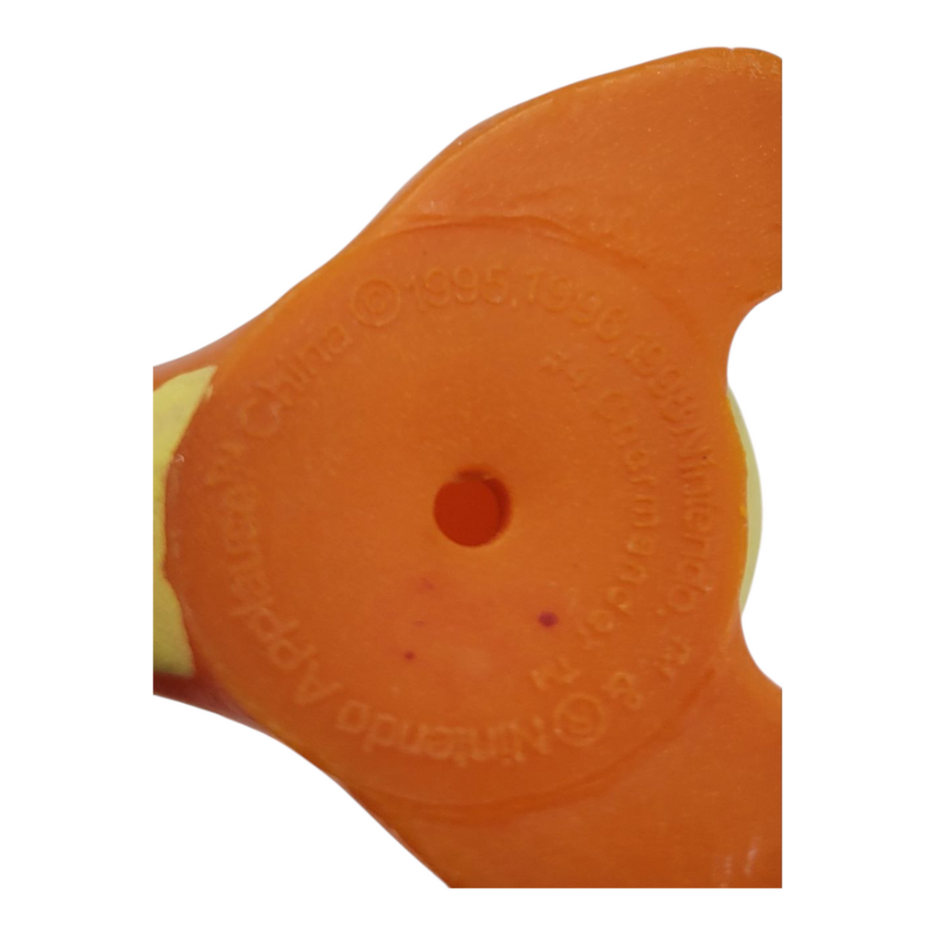 The Vintage 1995 Nintendo Applause Charmander Keychain Figure is a collectible action figure of the iconic Pokémon character Charmander. Made of orange plastic, this keychain figure is part of the Pokémon Keychain Series by Nintendo. This officially branded product from China features Charmander in a compact unit, making it a perfect addition to any Pokémon fan's collection.