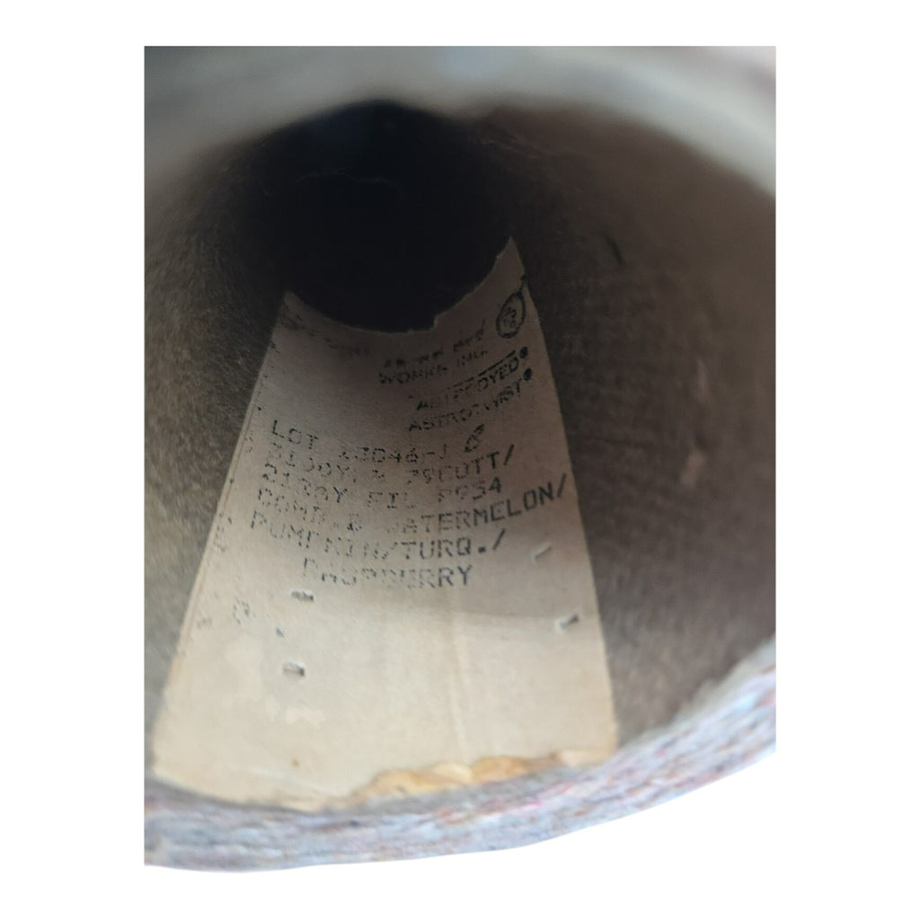 This product is a lot of 2 vintage acrylic cone yarns in watermelon, pumpkin, turq, and raspberry colors. The yarn is sold in a lot unit and has a multi-color design, perfect for crafters looking to add a unique and vintage touch to their projects. Each cone of yarn is made of acrylic fiber, making it easy to work with and ideal for various crafting needs.