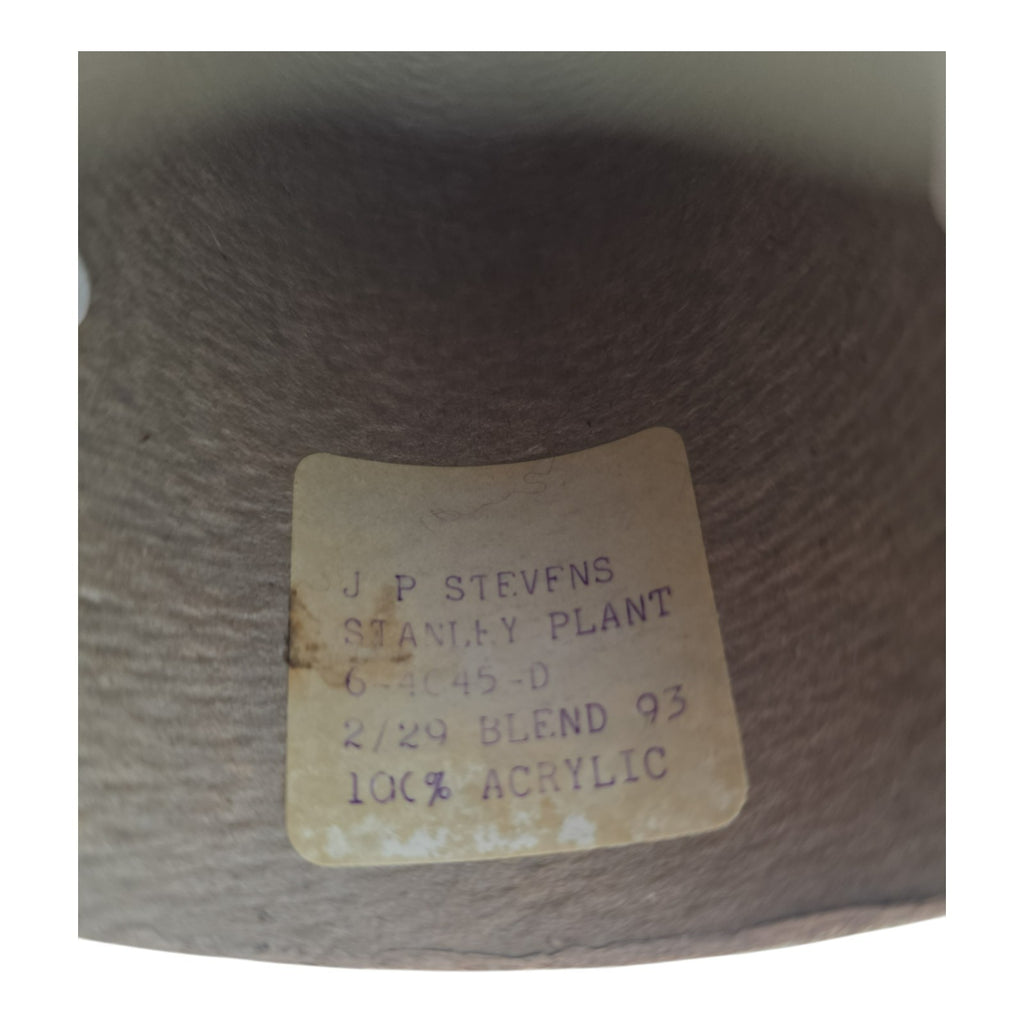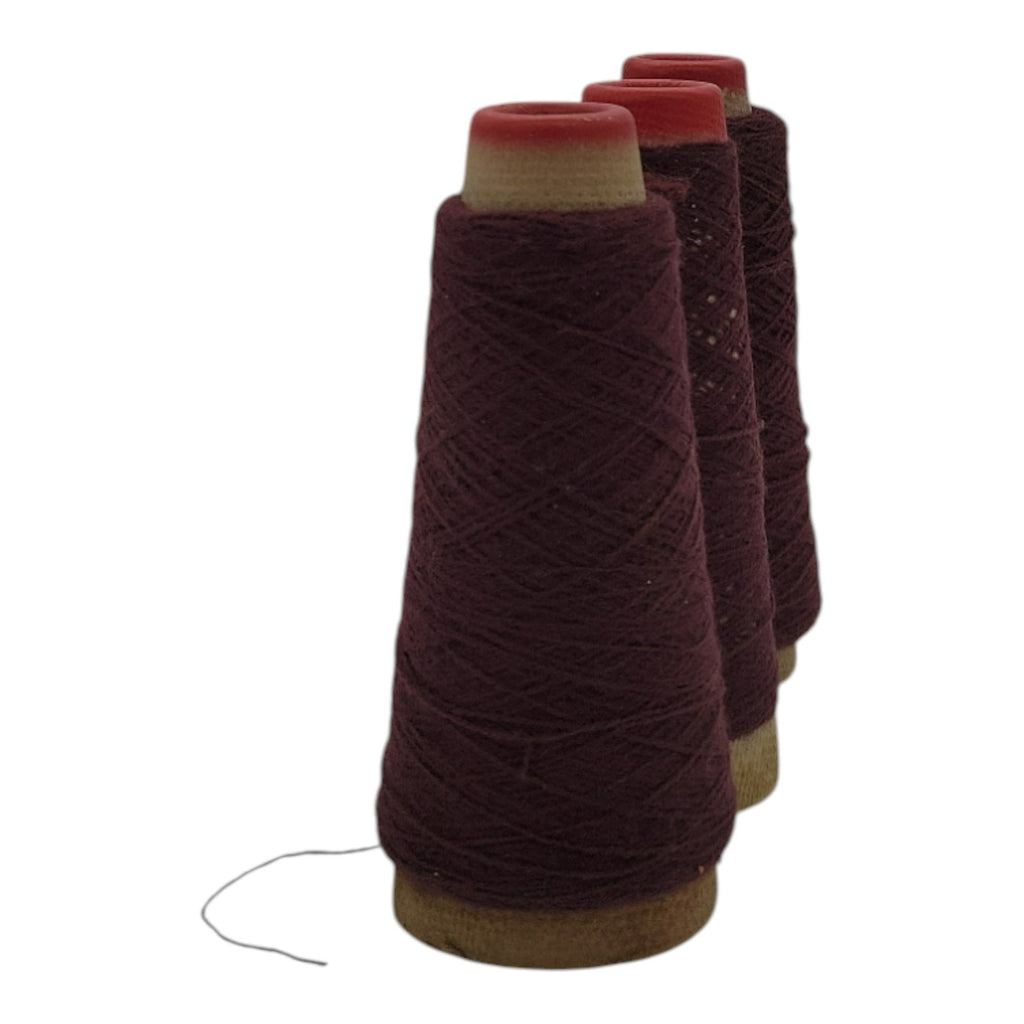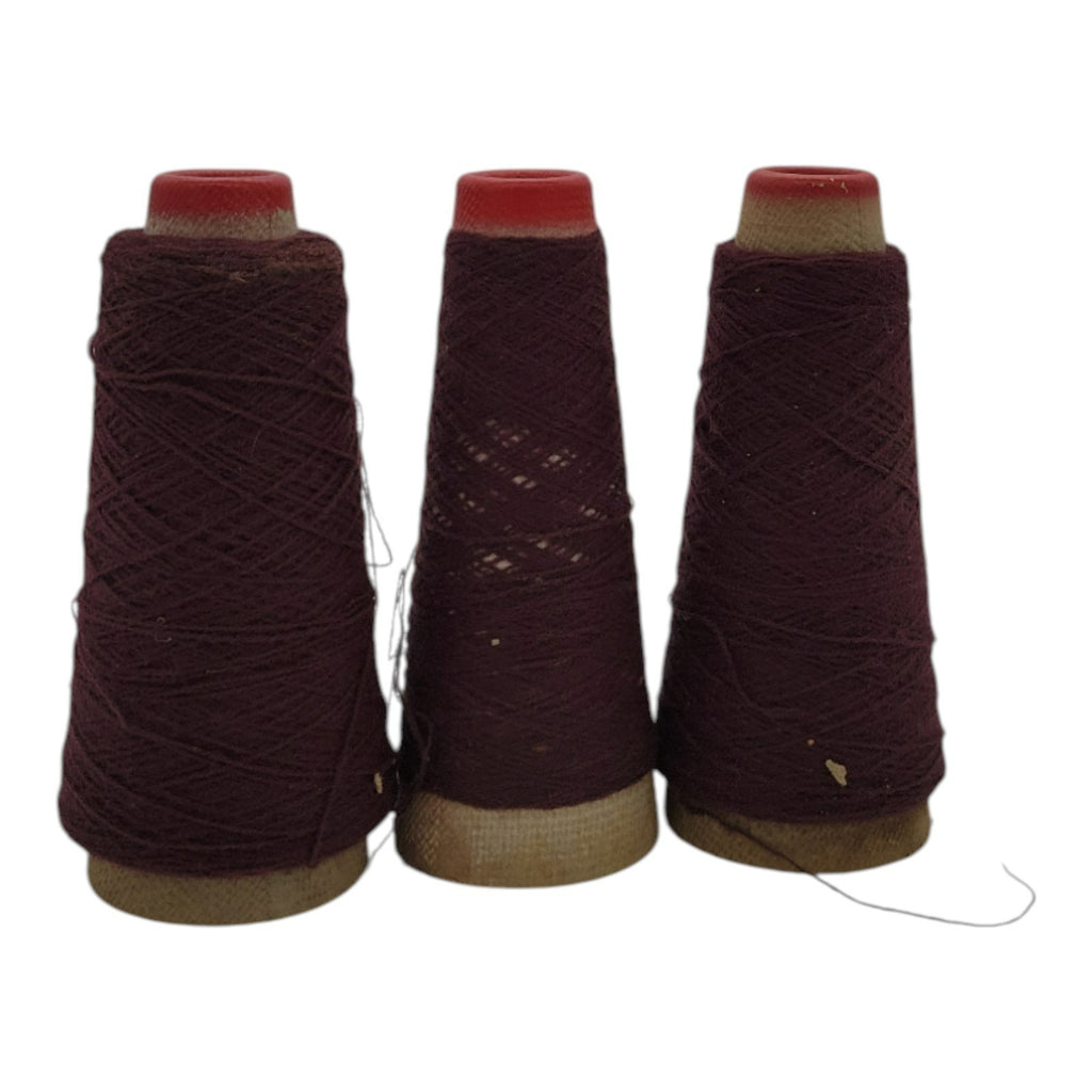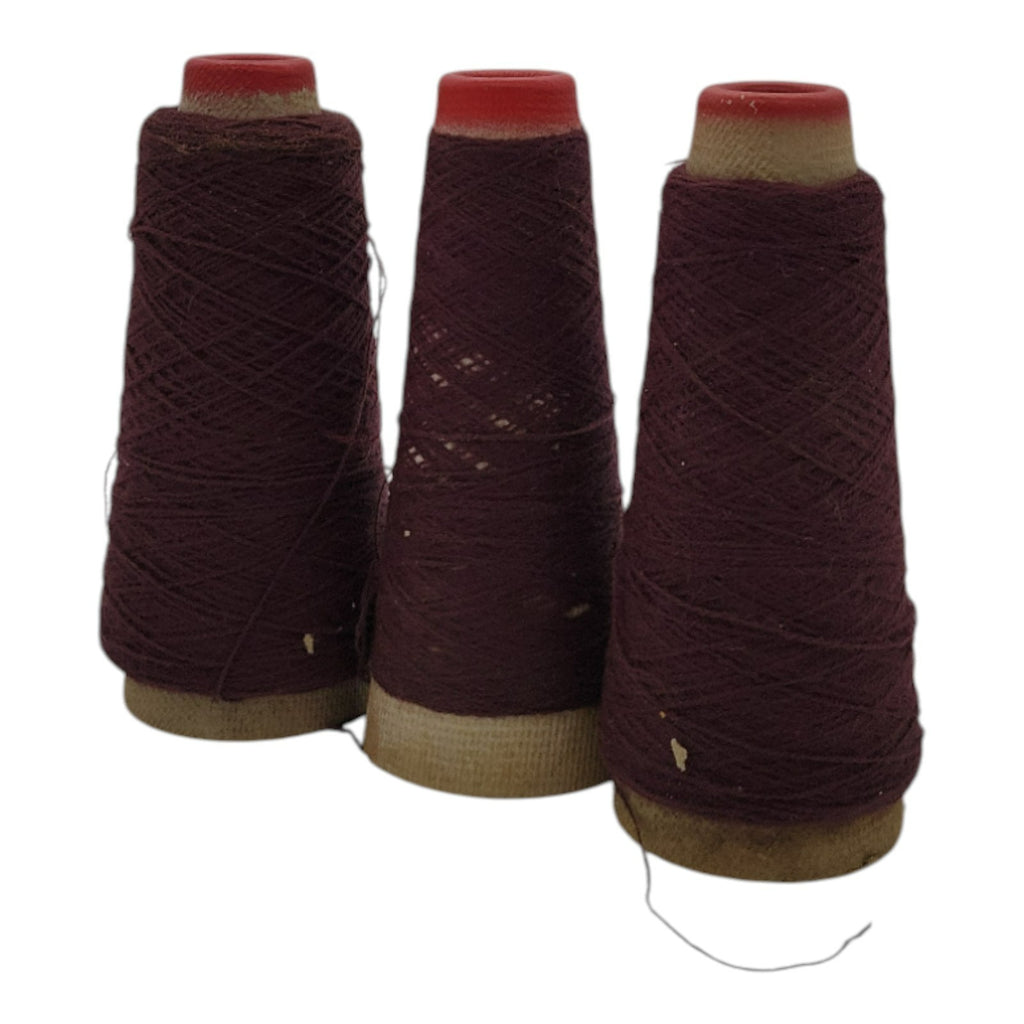 The Vintage J P Stevens Stanley Plant 2/29 Blend 23 Yarn cone Acrylic Lot of 3 is a collection of three acrylic yarn cones in a burgundy color. Made by the brand J P Stevens, this vintage yarn is perfect for crafting projects that require a unique and retro touch. Each cone contains a 2/29 Blend 23 model of yarn, making it ideal for a variety of needlecrafts and yarn-related endeavors.