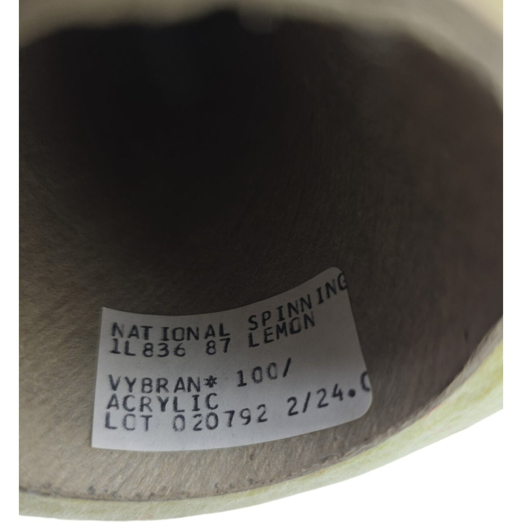 The Vintage National Spinning 2/24 Acrylic Weaving Knitting Yarn in Lemon is a unique and stylish addition to any crafter's stash. Made by National, this vintage yarn is crafted from acrylic in a cone shape, making it easy to work with for knitting or weaving projects. With a vibrant lemon color, this yarn is perfect for adding a pop of color to your creations. Suitable for various crafts, this unit of vintage yarn is sure to inspire your next project with its vintage charm and quality construction.