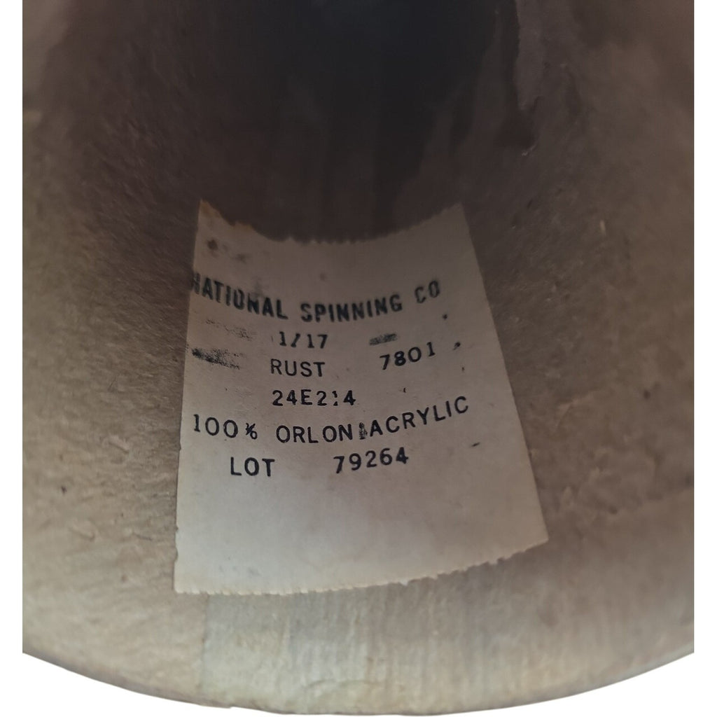 The Vintage National Spinning Co 1/17 Orlon Acrylic Cone Yarn in Rust color is a rare find for crafters and collectors. This lot of 2 units features high-quality acrylic fiber content, perfect for creating timeless pieces with a vintage touch. The cone shape of the yarn makes it ideal for various crafting projects, adding a unique and classic style to your creations. The rich rust color adds depth and warmth to any project, making it a versatile and eye-catching option for your next craft project.