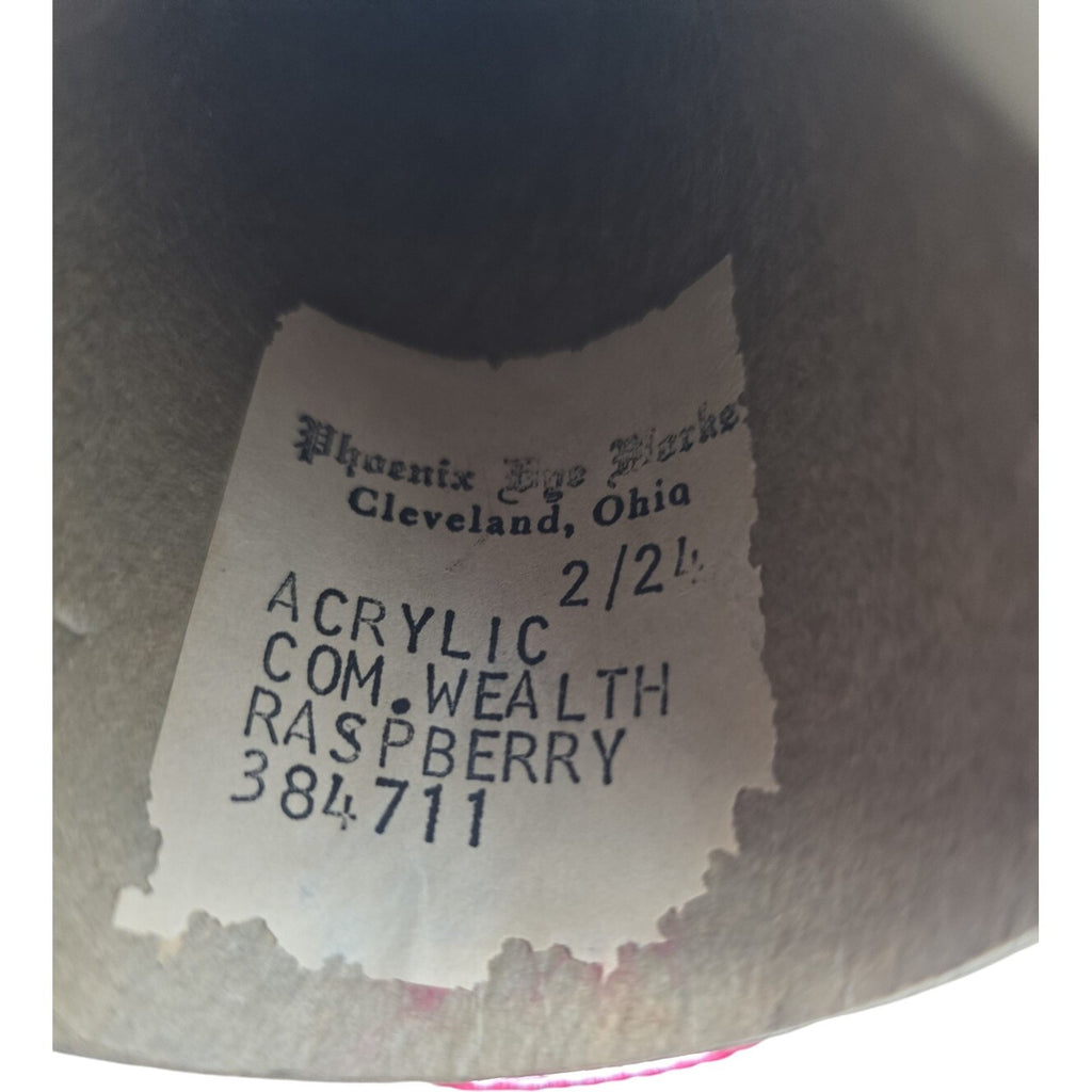 The Vintage Phoenix Eye Works Raspberry Acrylic Yarn Cone 2/24 Lot 384711 is a unique and charming set of vintage yarn cones in a lovely raspberry color. Made by Phoenix Dye Works, this lot includes 3 units of acrylic yarn, perfect for various crafts and needlecraft projects. The cones are a great addition to any yarn collection, adding a touch of nostalgia and creativity to your crafting endeavors.