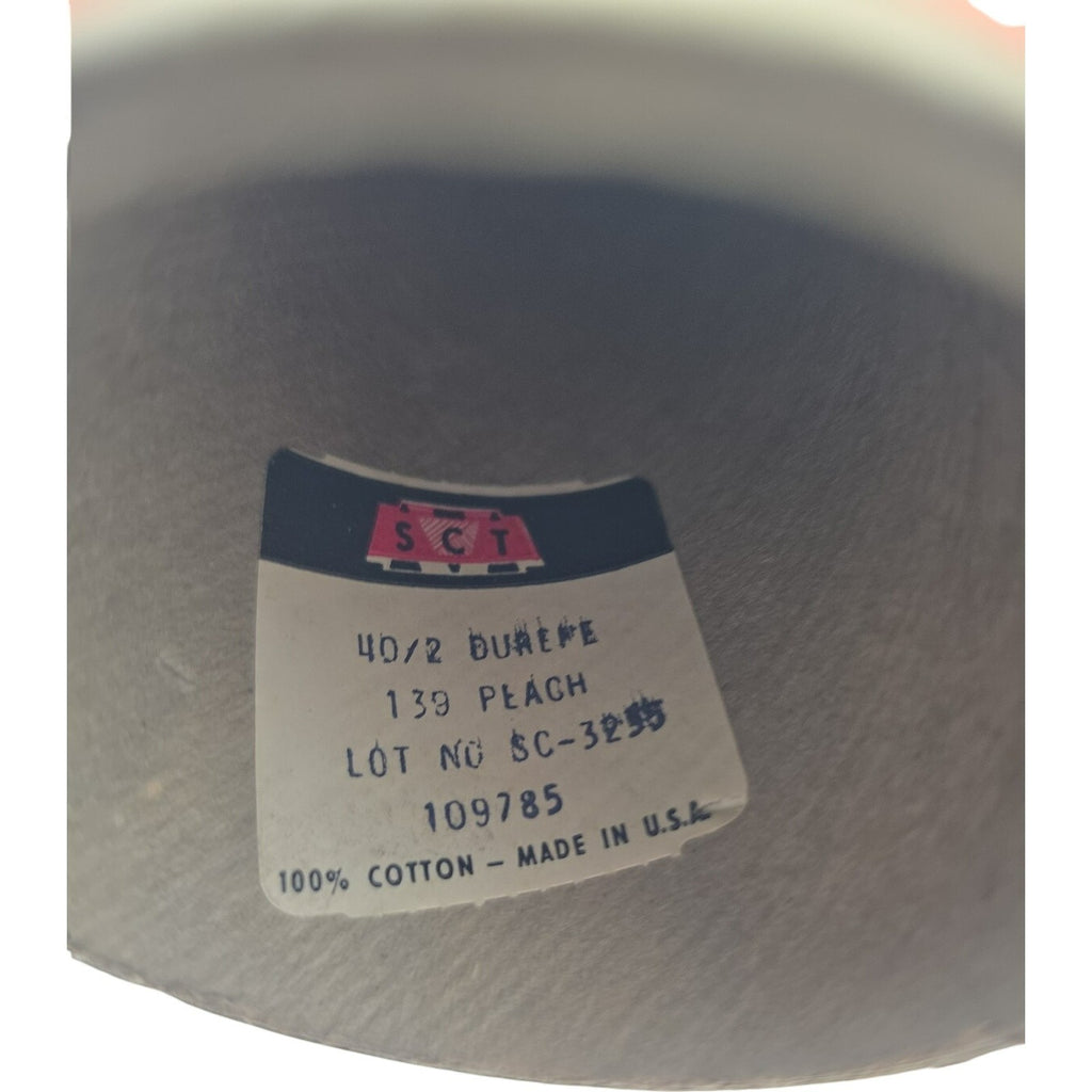 The Vintage SCT 40/2 Durefe 139 Peach Cone Yarn 109785 is a set of 5 cones of 100% cotton weaving yarn in a beautiful peach color. This vintage yarn is perfect for various crafts and creates a soft, luxurious texture when used for weaving projects. With its unique shape and high-quality fiber content, this yarn is sure to add a touch of nostalgia and elegance to any craft project.