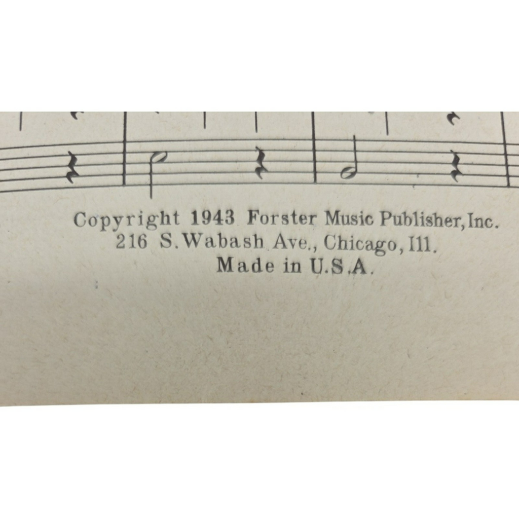 This product is a vintage sheet music from 1943, featuring the song "Goodbye, my love, I heard a Silver Trumpet" by Fred Rose. The sheet music is specifically designed for piano and falls under the genre of Musicals. Published by Foster in the United States, this intermediate level sheet music is a rare and collectible piece for music enthusiasts and collectors alike. With a unique and classic tune, this item offers a glimpse into musical history and provides a nostalgic touch to any collection.