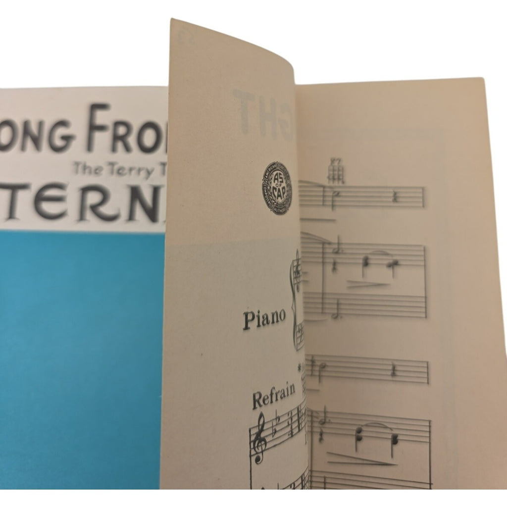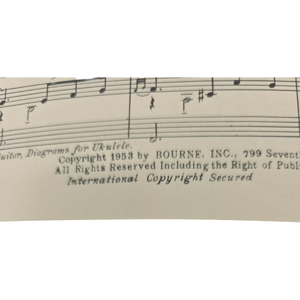The product is a vintage sheet music from the 1953 film Limelight, featuring the song "Eternally" sung by Charles Chaplin. This piano sheet music includes vocal scores, chord charts, and is suitable for intermediate level players. Published by Bourne Inc in the United States, this unit is perfect for musicians looking to play this classic soundtrack on acoustic guitar or piano. Ideal for collectors and music enthusiasts, this piece offers a glimpse into the music of the mid-20th century.