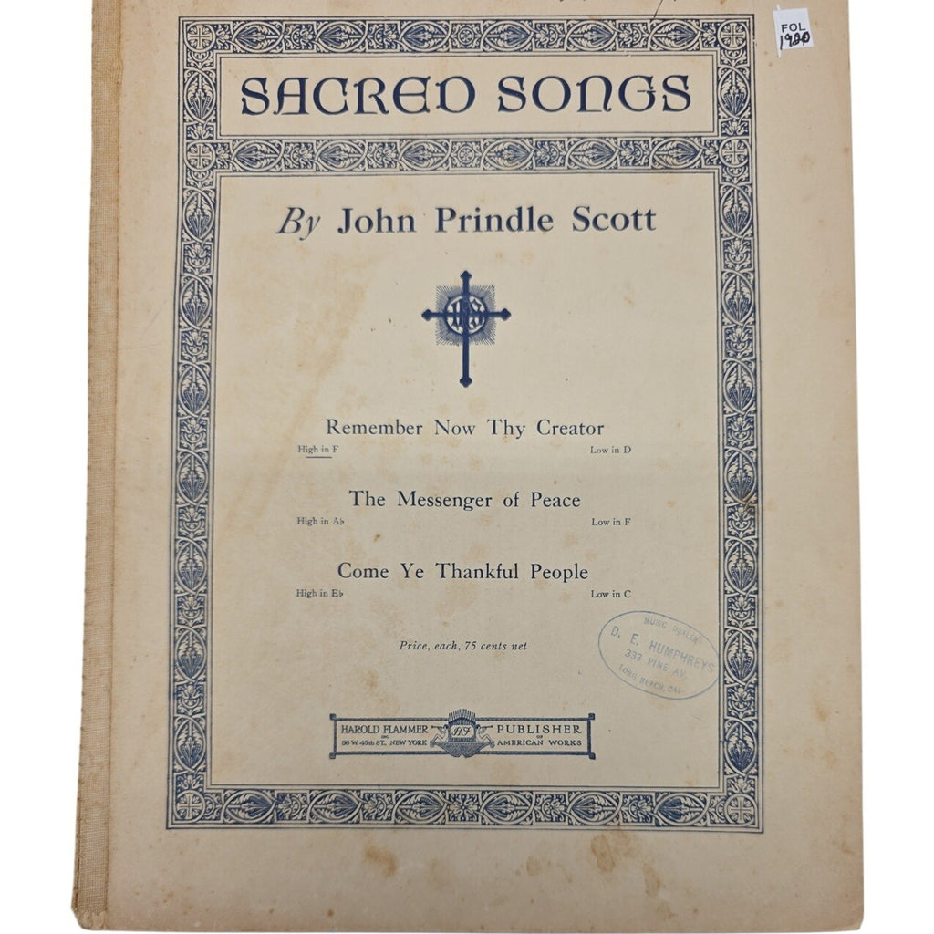 The product is a vintage sheet music for sacred songs from the 1920s, specifically featuring compositions by John Prindle Scott. Published by Harold Flammer in the United States, this single unit falls under the Musical genre and provides a nostalgic glimpse into historical musical compositions. Perfect for collectors or enthusiasts of vintage sheet music, this item offers a unique opportunity to own a piece of musical history from the early 20th century.