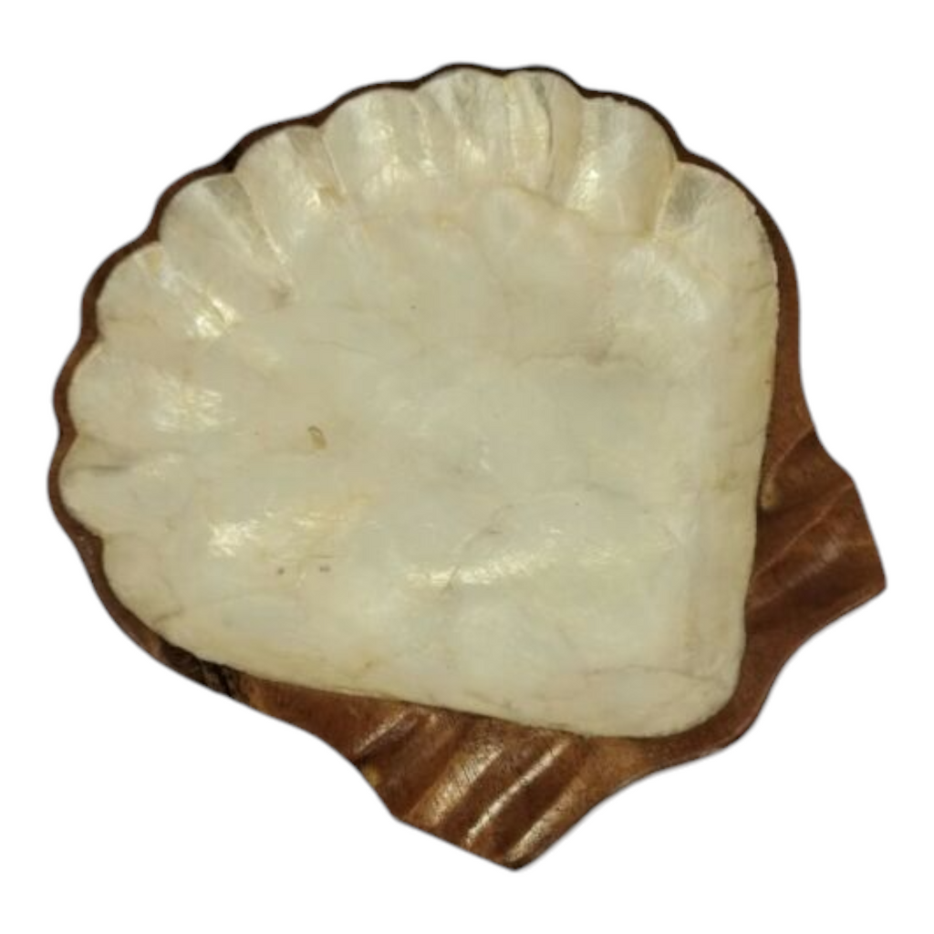 Vintage Shell Shaped Hawaiian Monkey Pod Wooden Dish (Simulated Pearl Lined)