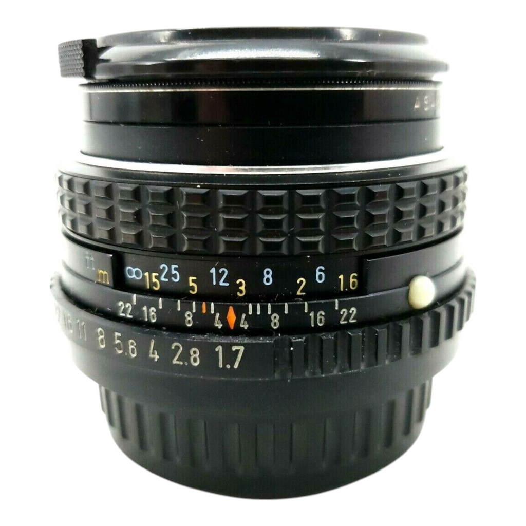 Capture stunning images with the SMC Pentax-M 1:1.7 50mm camera lens, crafted by Asahi Opt. Co. in Japan. This vintage lens is in very good condition, showing only light wear from normal use. It comes with a Pentax box, though it is not the original box for this specific unit. Known for its sharpness and clarity, this lens is perfect for photography enthusiasts seeking to add a high-quality manual focus lens to their collection.