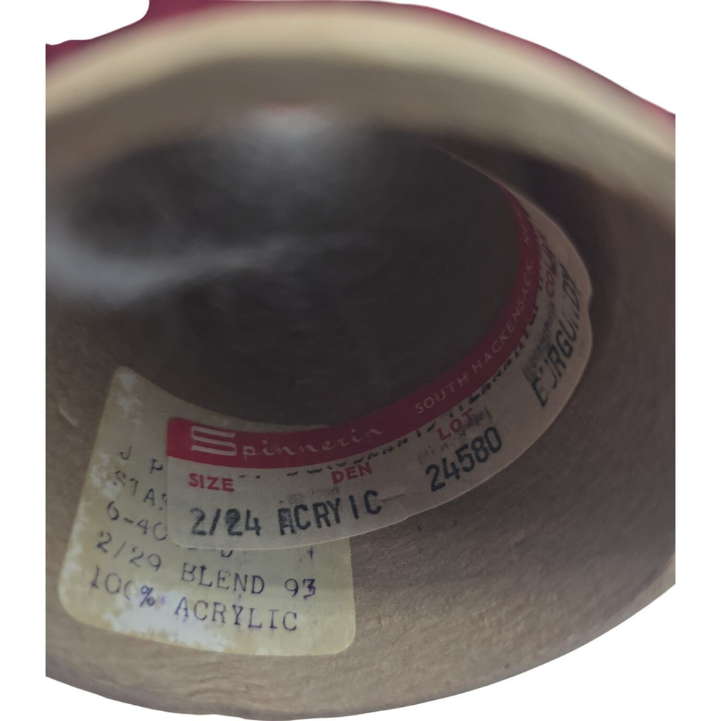 The Vintage Spinnerin 2/24 Burgundy Acrylic weaving Cone Yarn 24580 is a set of two cones of yarn perfect for crafting projects. Made of acrylic fiber and featuring a vintage style, this burgundy yarn is ideal for weaving and other needlecrafts. The Spinnerin brand ensures quality and reliability, making this lot of vintage yarn a valuable addition to any crafter's supply. Each cone contains a unit quantity of 2, providing ample material for various projects.