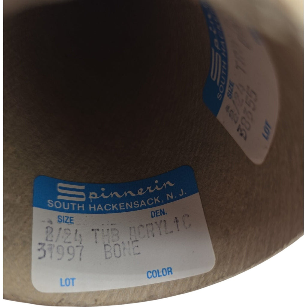 The Vintage Spinnerin Bone White 2/24 Acrylic Weaving Knitting Cone Yarn Lot of 4 is a set of four acrylic yarn cones in a classic bone white color. Made by Spinnerin in the United States, this vintage yarn is perfect for weaving and knitting projects. With a total of 4 units in the lot, each cone is a unique piece that adds a touch of nostalgia to your crafting endeavors. The cone shape makes it easy to work with, and the acrylic fiber ensures durability and longevity in your finished pieces.