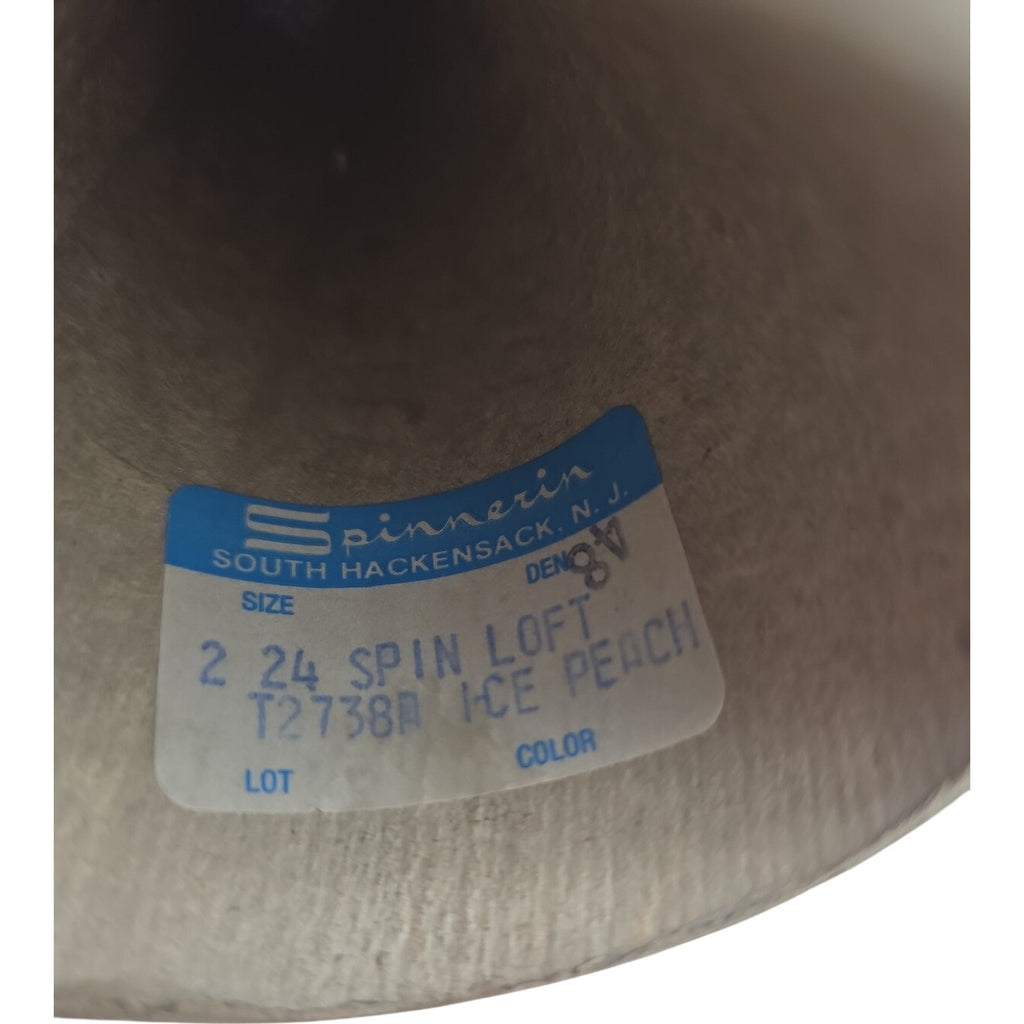 The Vintage Spinnerin Spin Loft 2/24 Ice Peach Yarn Cone T2738A is a vintage yarn cone perfect for crafts. Made by Spinnerin in the United States, this unit is a single vintage yarn cone in a beautiful ice peach color. With a unique shape and vintage style, this yarn cone is ideal for a variety of craft projects, adding a touch of nostalgia and charm to your creations.