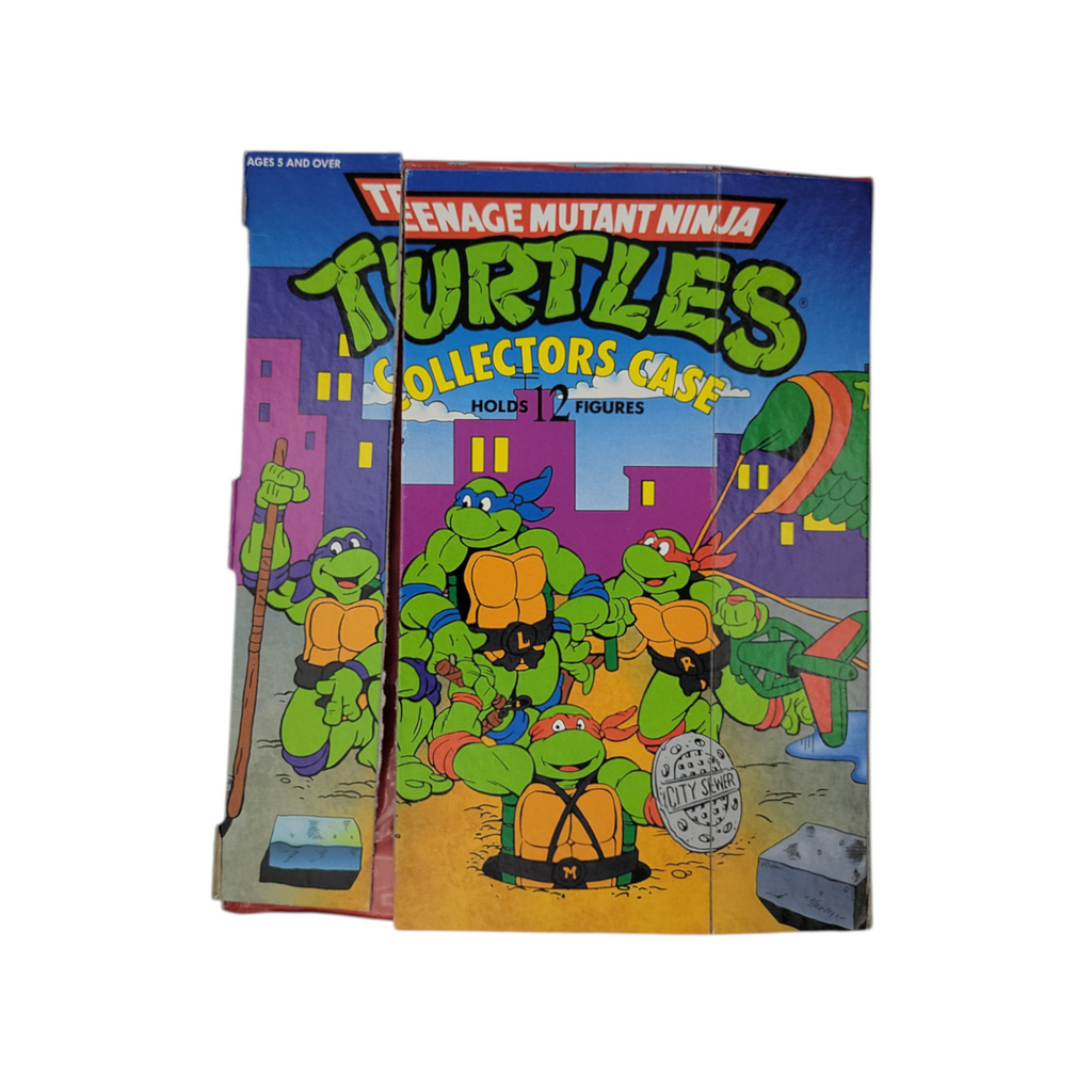 The Vintage Teenage Mutant Ninja Turtles Deluxe Collectors Carrying Case is a nostalgic accessory perfect for fans of the iconic animated series. Made in the United States during the 1990s, this colorful carrying case is designed to hold your favorite action figures from the Teenage Mutant Ninja Turtles franchise. With a collector's edition theme and featuring items from the popular TV show, this vintage piece is a must-have for any TMNT enthusiast looking to showcase their love for the animated series.
