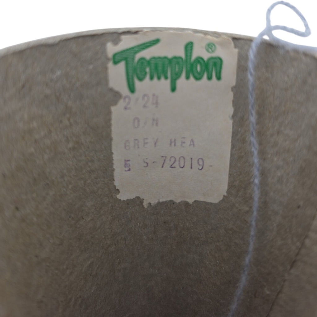 The Vintage Templon 2/24 Grey Heather Weaving Knitting Yarn Cone 72019 Lot of 3 is a set of three vintage yarn cones in a soft grey heather color. These cones are suitable for crafts and are perfect for weaving or knitting projects. The Templon brand ensures high quality and durability, making this lot of vintage yarn a valuable addition to any crafters' supplies.