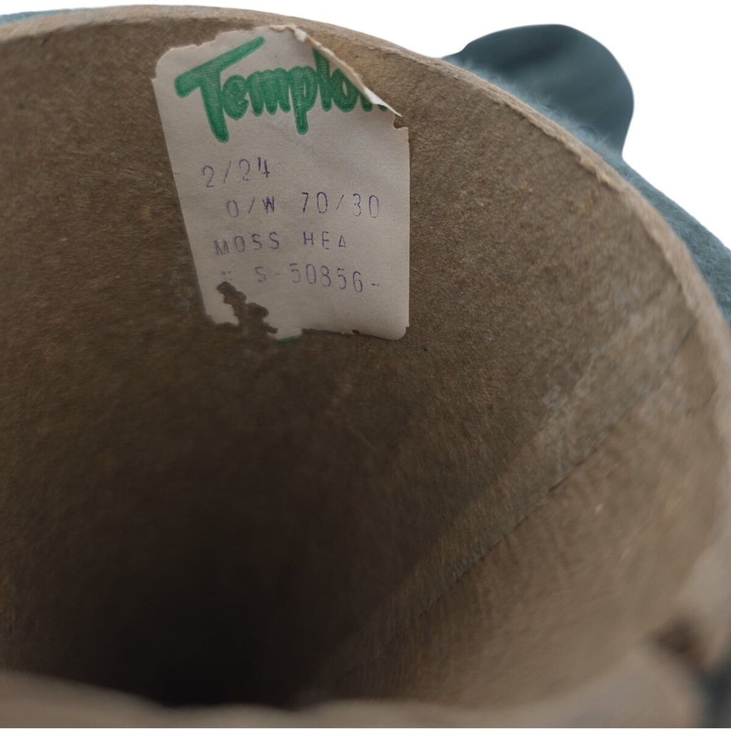 This Vintage Templon yarn cone is a luxurious blend of wool and heather green color, perfect for weaving or knitting. Made in the United States, this lot of 3 cones features a unique moss heather green hue that adds a touch of vintage charm to any project. The high-quality wool blend ensures a soft and durable finish, making it a valuable addition to any crafter's collection.