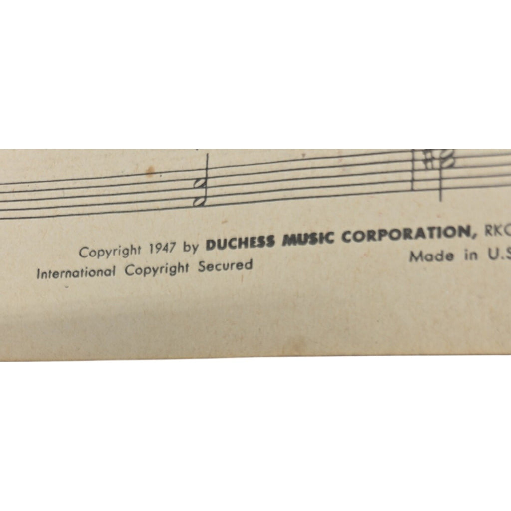 The product is vintage sheet music for the song "Vintage Teresa" with lyrics by Jack Hoffman and music by Babe Russin, published in 1947 by Duchess Music Corporation in the United States. It is targeted towards intermediate level guitar, piano, and vocal players, falling under the genre of Musicals. This item is a single unit offering a nostalgic and classic piece of music history for collectors and enthusiasts of vintage sheet music.