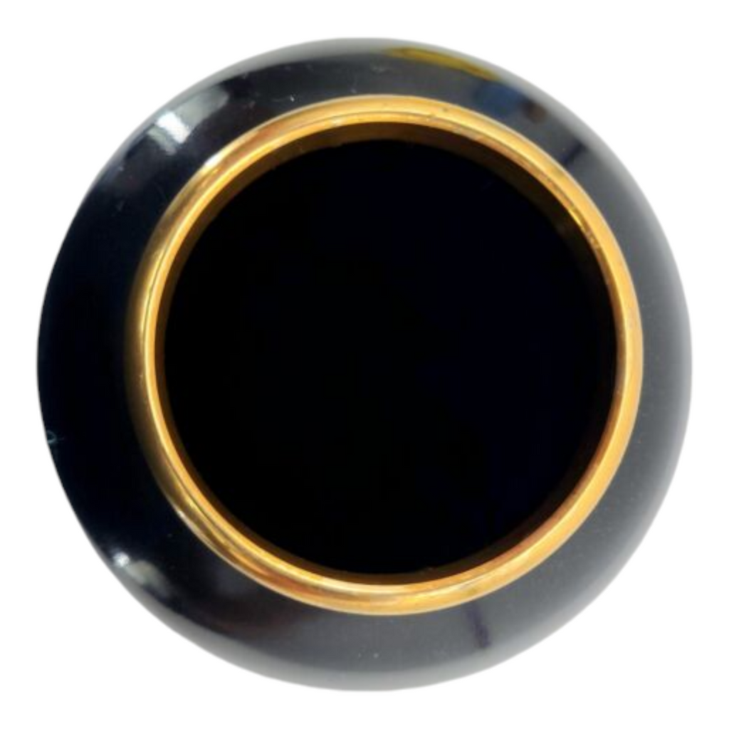 Design: Black vase with 24K gold edge and floral artwork, a hallmark of the Art of Chokin style.