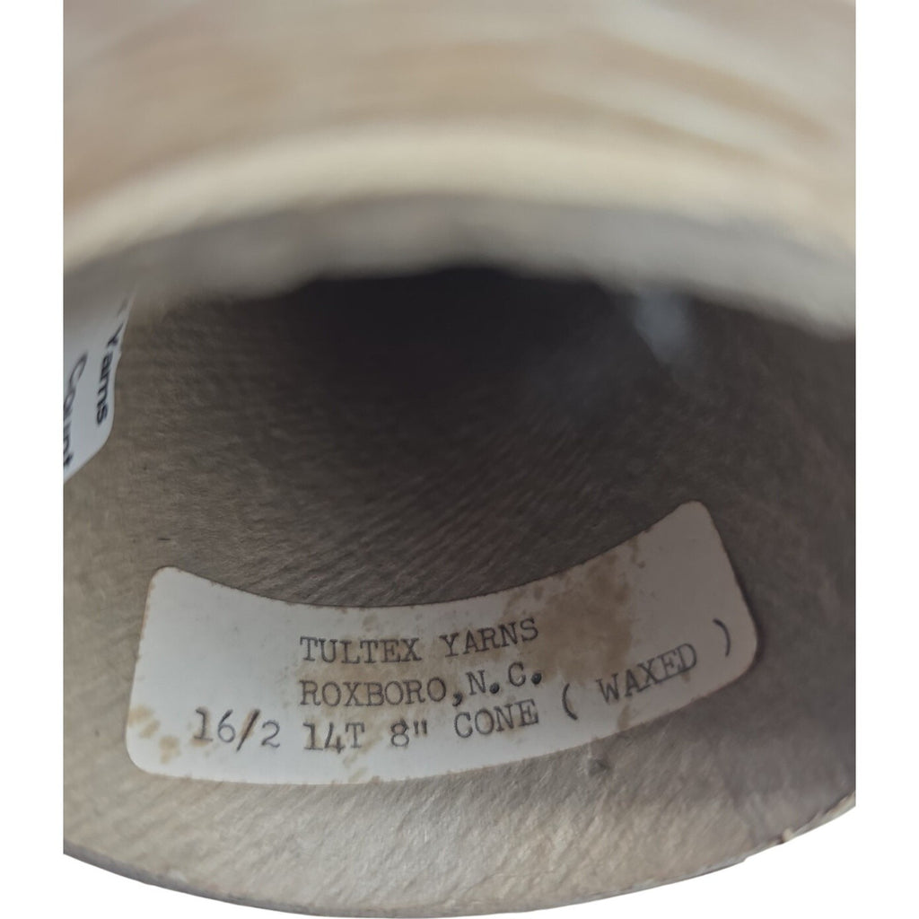 This Vintage Tultex Yarns 16/2 14T 8 in Waxed Natural Off-White Weaving Cone Yarn is a unique and nostalgic crafting supply perfect for those with a love for traditional crafts. Made in the United States by Tultex Yarns, this vintage yarn comes in a cone shape and is suitable for a variety of crafting projects. The natural/off-white color adds a timeless touch to any project, making it a versatile and high-quality option for weaving or other crafts.