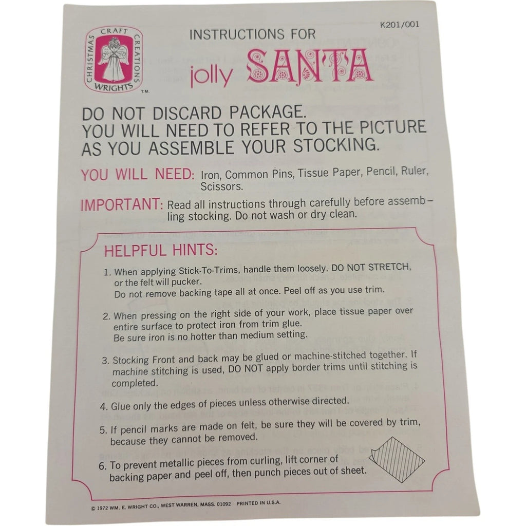 The Vintage Unfinished Wright's Jolly Santa Felt Christmas Stocking Kit K201 is a unique and charming collectible item perfect for Christmas enthusiasts. Made in the United States in 1972, this stocking kit includes all the necessary materials to create a festive and nostalgic stocking. The multicolor design and classic Santa Claus imagery make it a timeless piece that will bring joy to any holiday decor collection. With its vintage appeal and unfinished quality, this kit offers a chance for crafters to personalize and add their own touch to this special Christmas tradition.