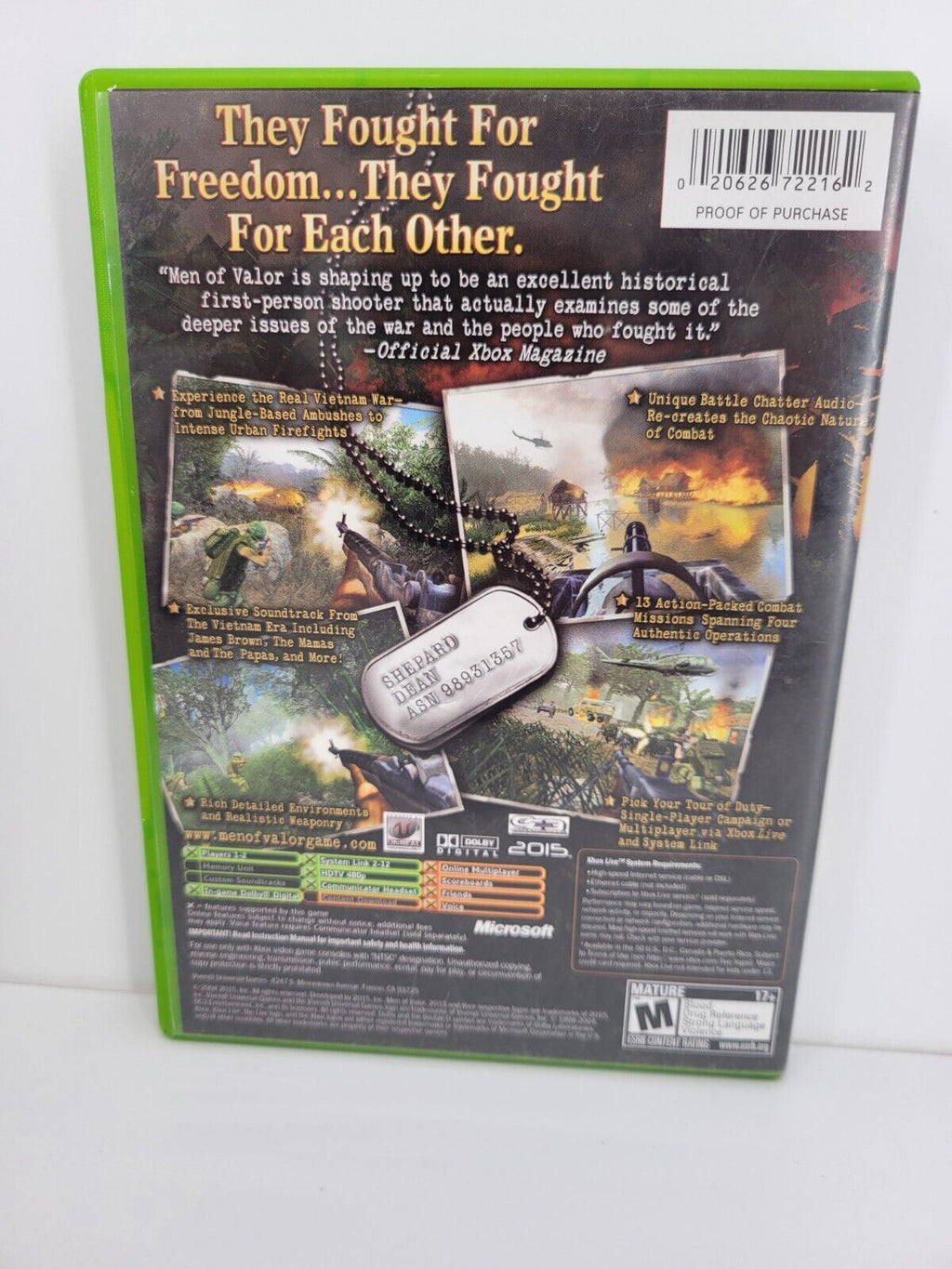 Immerse yourself in the gripping and intense action of the Vietnam War with this pre-owned *Men of Valor* Xbox game. Developed by 2015, Inc. and published by Vivendi Universal, this first-person shooter takes players through the heart of battle with historically accurate missions and gameplay that captures the reality of wartime camaraderie and challenge. With realistic audio and dynamic environments, it delivers an authentic military experience that engages from start to finish.