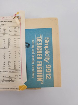 The product is a vintage 1970s Simplicity 9912 designer fashion flared dress sewing pattern in size 10 for adult women. This cut sewing pattern offers a retro design for creating a stylish and flared dress with a touch of nostalgia from the 1970s era. Perfect for those who enjoy crafting and sewing their own unique and vintage-inspired fashion pieces.