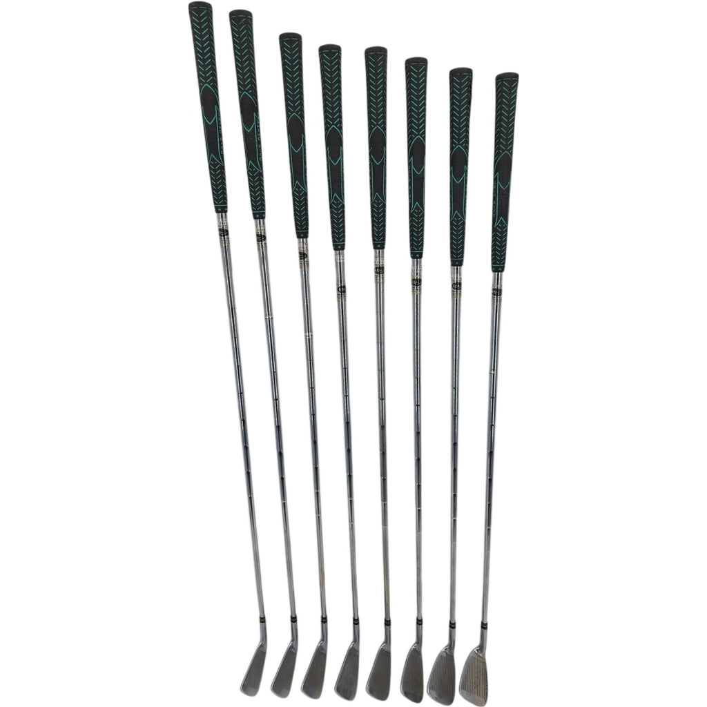 The Walter Hagen Haig Ultra Golf Irons are a high-quality set of 8 clubs designed for right-handed male golfers. Made from stainless steel with a blade head shape, these irons feature a standard lie angle and come with original grips. The set includes 2-3 irons, 5-9 irons, and a pitching wedge, all with steel shafts. Perfect for golfers looking for precision and consistency in their shots, these Walter Hagen irons are proudly made in the United States.