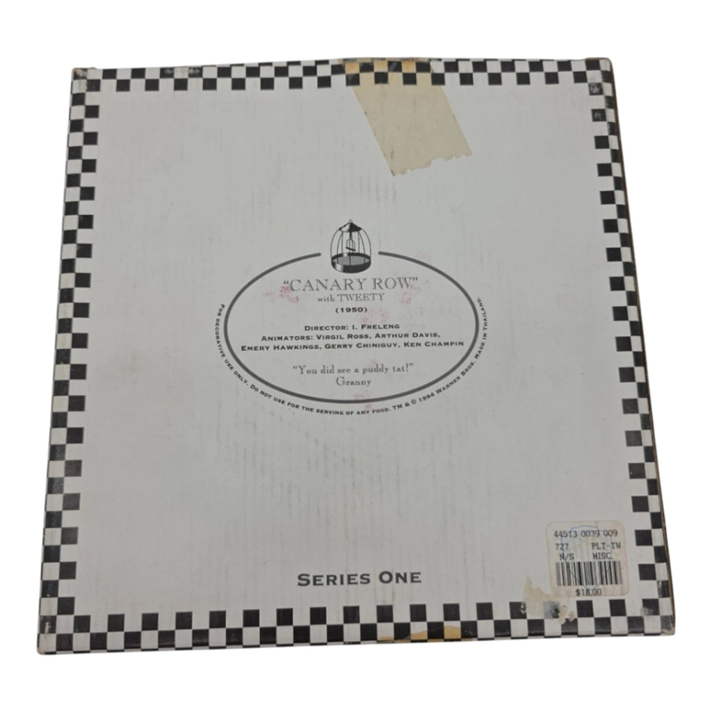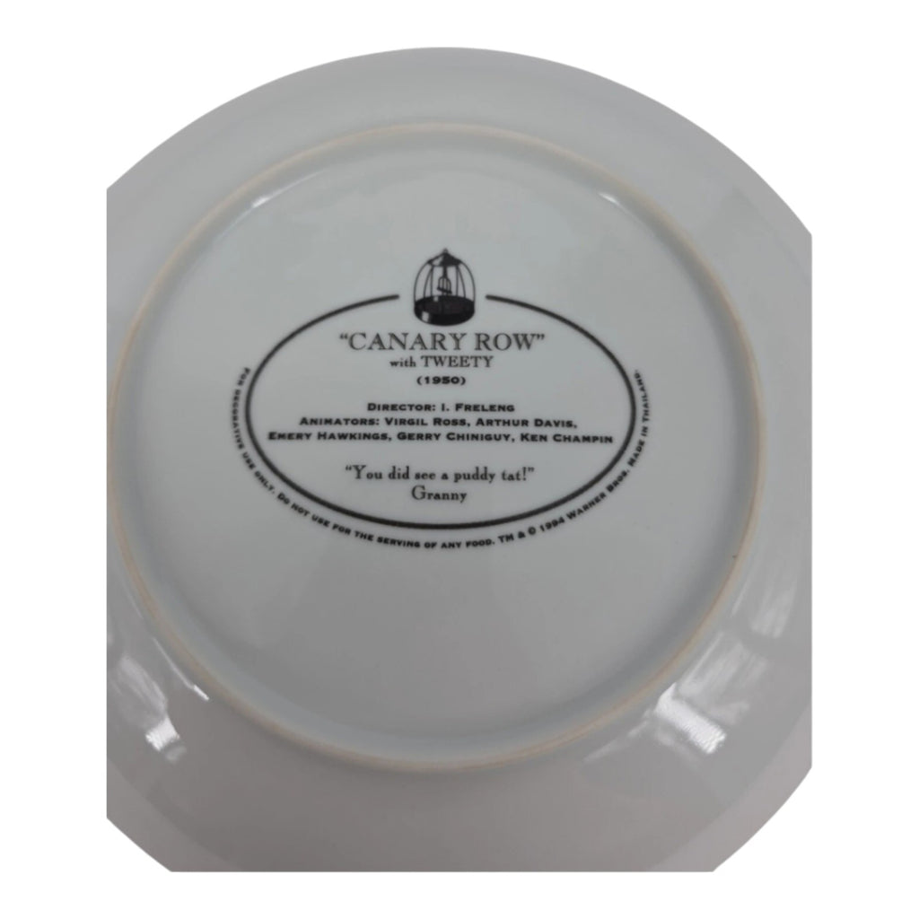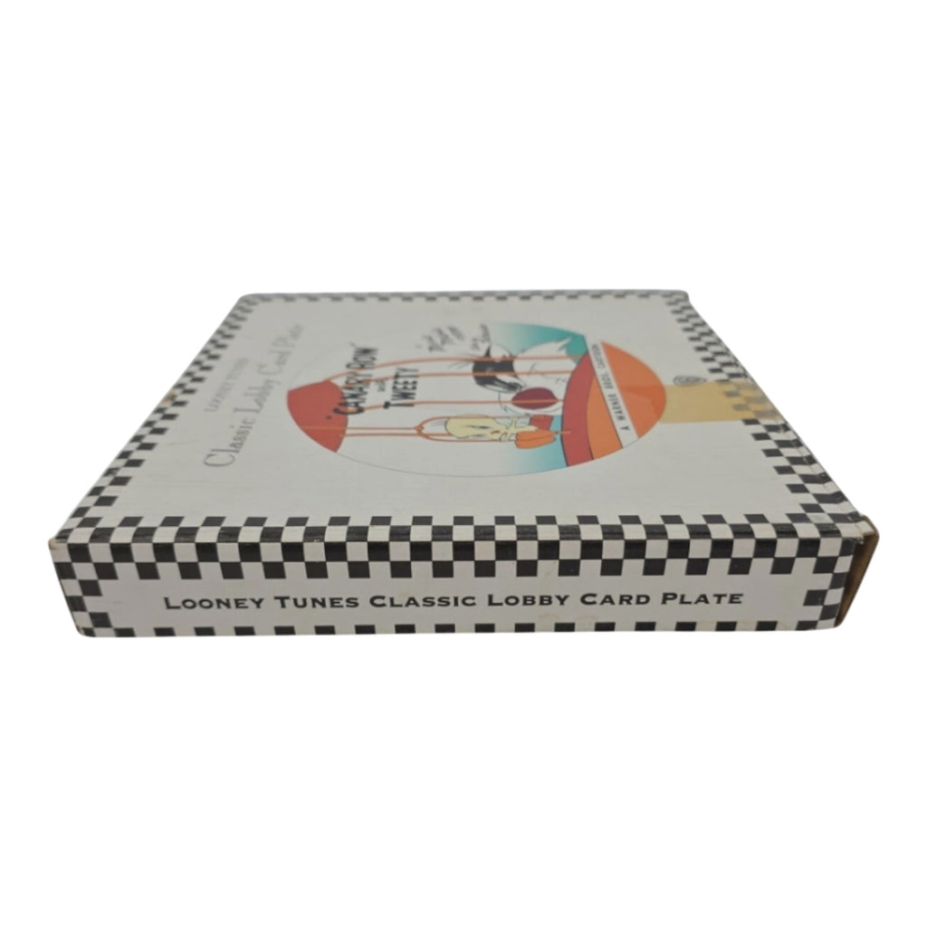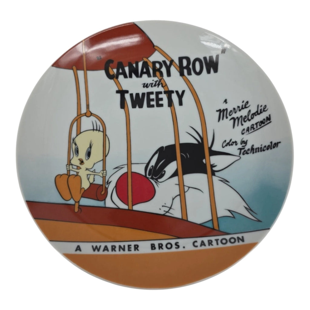 The Warner Bros Looney Tunes Tweety Canary Row Classic Lobby Card Plate with Stand is a round collector plate featuring colorful images from the iconic Warner Bros cartoons. This decorative piece showcases beloved characters like Bugs Bunny, Daffy Duck, Tweety, and more, making it a must-have for collectors of classic animation memorabilia. The multicolor design adds a fun and whimsical touch to any space, while the stand allows for easy display on a shelf or desk. Perfect for fans of Warner Bros and animated classics.