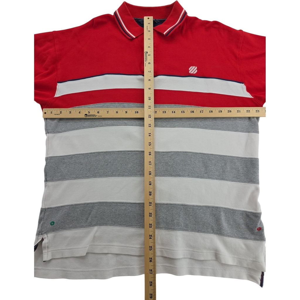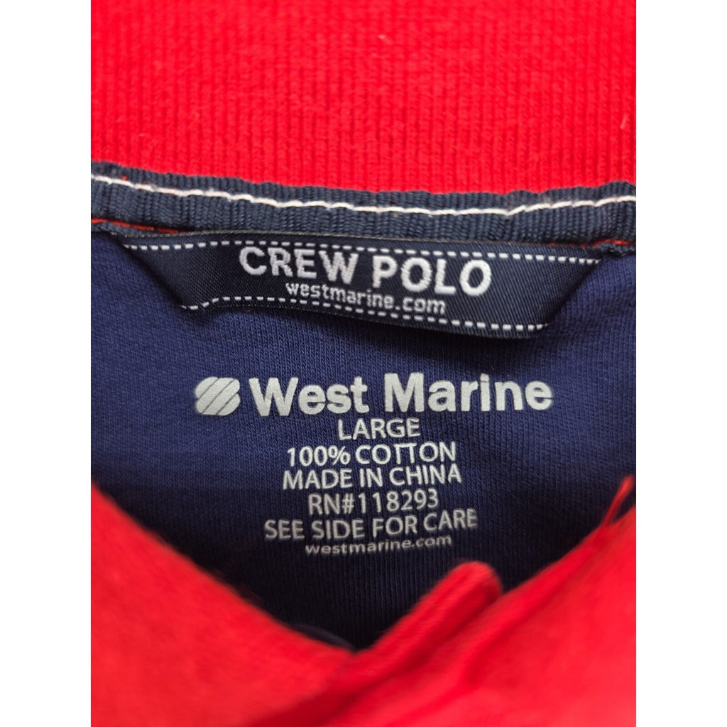 The West Marine Crew Polo is a stylish and comfortable golf polo shirt featuring a red, gray, and white striped design with a collared neckline and button closure. Made from cotton knit fabric, this short sleeve polo is machine washable and has a regular fit, making it perfect for casual occasions during the summer and spring seasons. With a chest size of 46 inches and a size L, this polo is designed for men who enjoy both style and functionality on the golf course or in everyday wear. The West Marine brand ensures quality and durability in this classic piece of men's clothing.