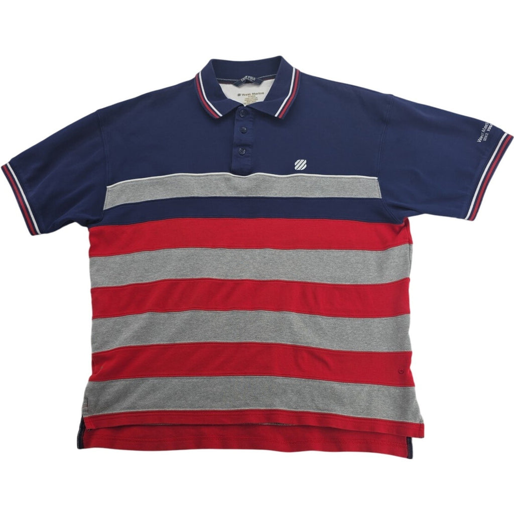 The West Marine Crew Polo Shirt in navy, red, and grey stripes is made of 100% cotton with a regular fit and short sleeves. This collared shirt features a button closure and is machine washable, making it perfect for casual occasions in the summer and spring seasons. With a chest size of 50 inches and XL size, this polo shirt is ideal for men who enjoy golfing and looking for a comfortable and stylish option for everyday wear. The spread collar style adds a touch of sophistication to this classic yet versatile piece.
