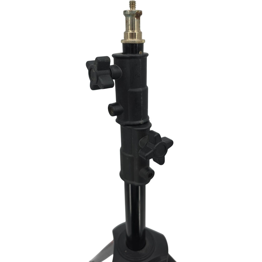 The Westcott Photo Basics 750 Light Stand is a versatile photography accessory designed for universal compatibility. With a maximum extension of 7ft, this adjustable tripod offers stability and flexibility for various lighting setups. The sleek black design and durable construction make it a reliable choice for professional photographers and videographers looking to enhance their lighting setups with ease and precision.