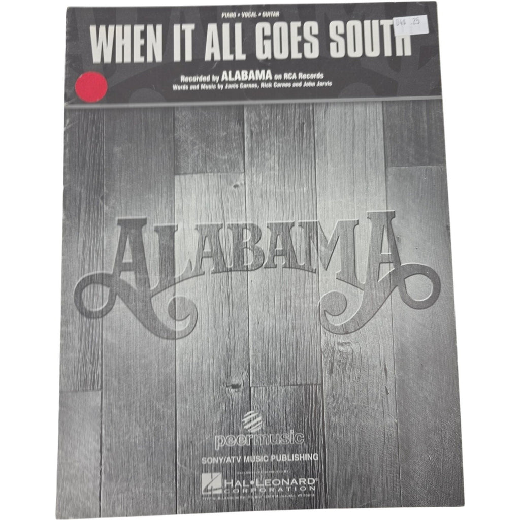 The product is a sheet music for the song "When It All Goes South" recorded by Alabama, written by Carnes, Carnes & Jarvis. It is published by Hal Leonard Corporation in the United States. The sheet music is in a format that allows musicians to play the song and is a single unit quantity. This vintage and antique piece of sheet music is a unique addition to any musician's collection, providing the opportunity to play a classic country music song.
