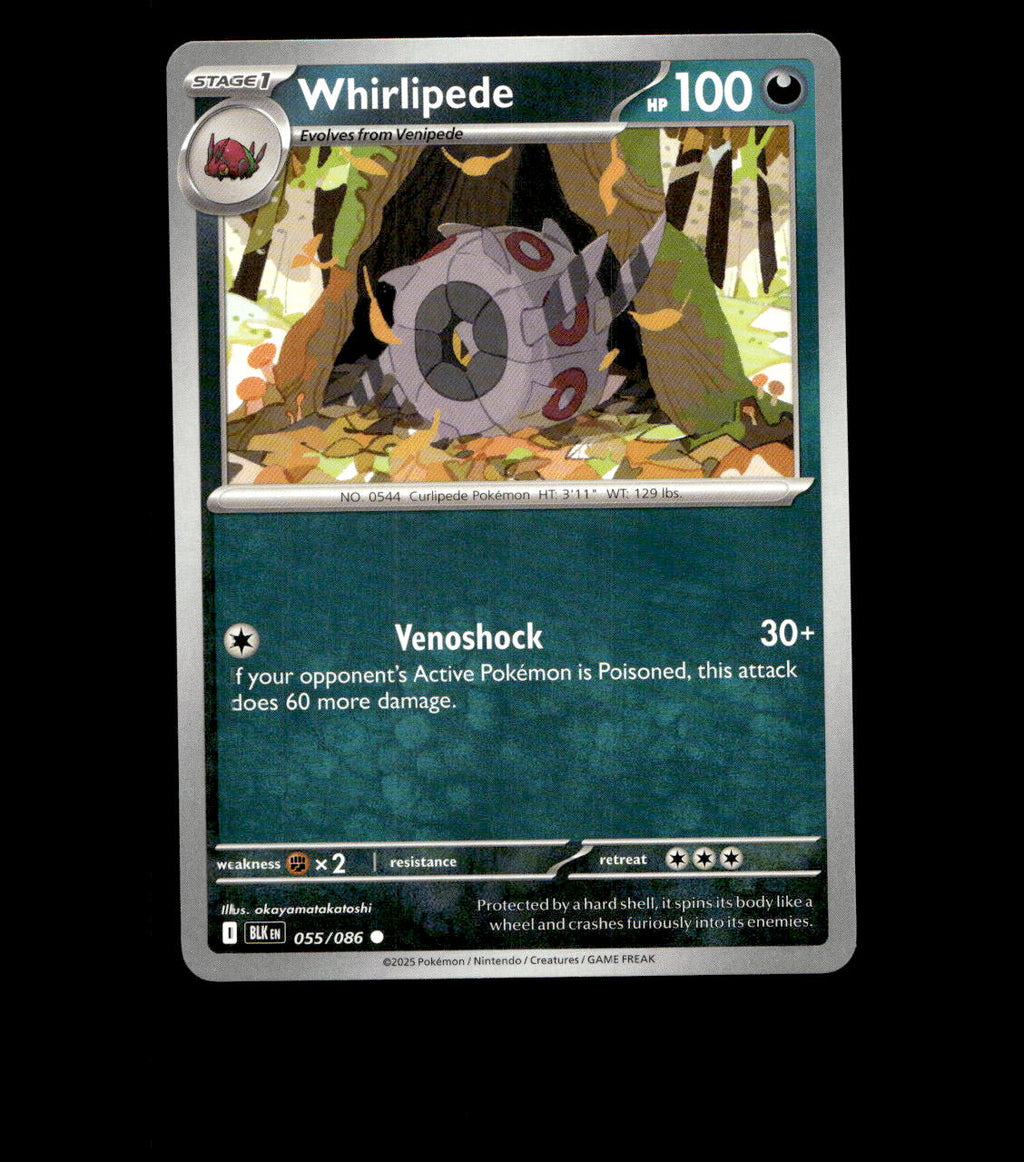 Whirlipede – 055/086 – Black Bolt – Non Holo – Near Mint - Pokemon Card - TCG