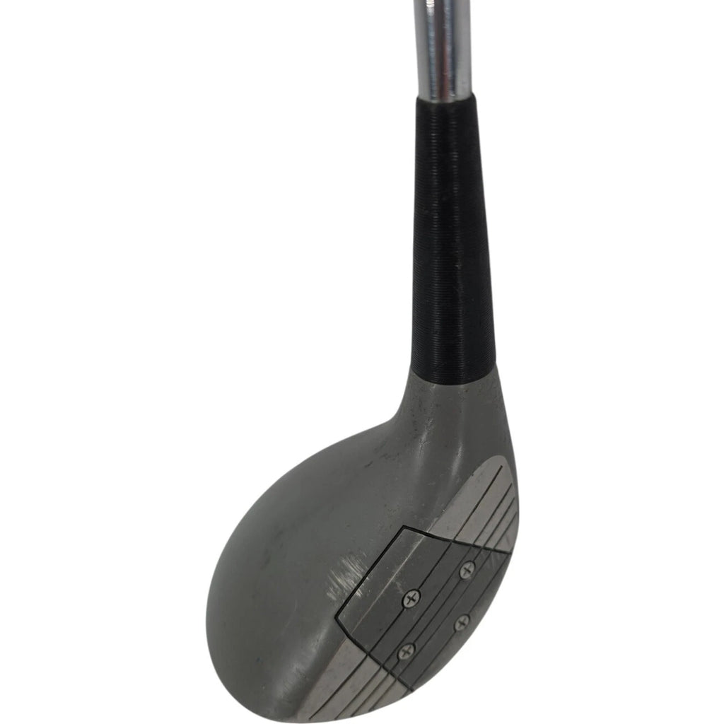 The Wilson 3 Fairway Wood is a high-quality golf club designed for men with a right-handed orientation. It features a durable stainless steel head and an E-Flex steel shaft, providing flexibility and control during swings. The club has a traditional mallet head shape, a silver/gray color, and comes with the original Wilson grip, ensuring a comfortable and secure hold on the club. Made in the United States, this fairway wood is a reliable and stylish addition to any golfer's equipment collection.