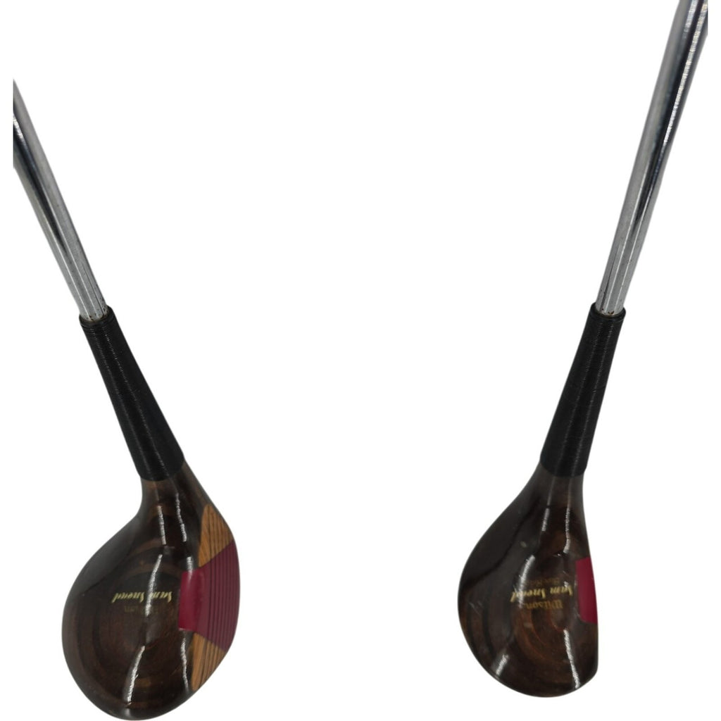 The Wilson 4300 Champion Wood Driver & 5 Fairway Wood Persimmon Golf Club Bundle is a vintage set of golf clubs designed for right-handed players. This bundle includes a wood driver and five fairway woods, all featuring traditional persimmon shafts known for their durability and feel. The Wilson 4300 Champion model is renowned for its quality craftsmanship and performance on the golf course, making it a sought-after choice for golf enthusiasts seeking vintage equipment with modern technology.