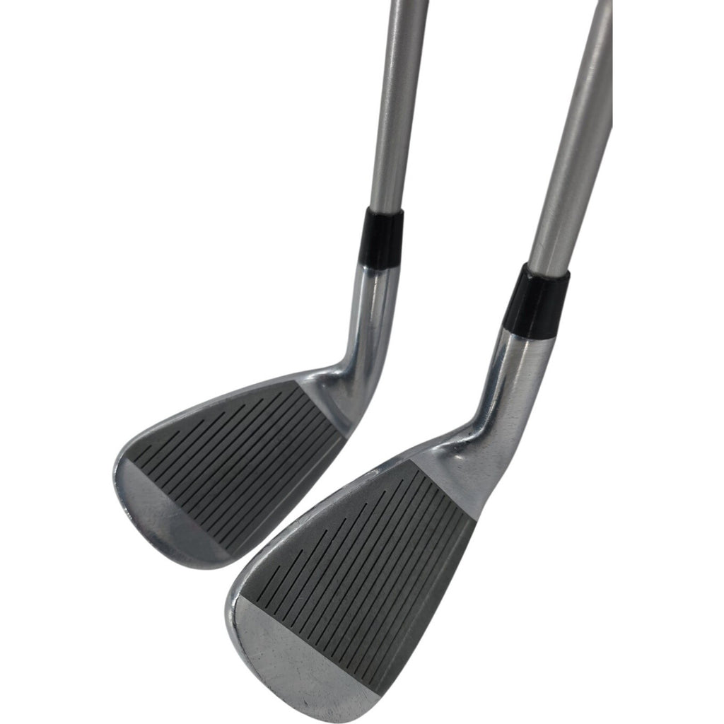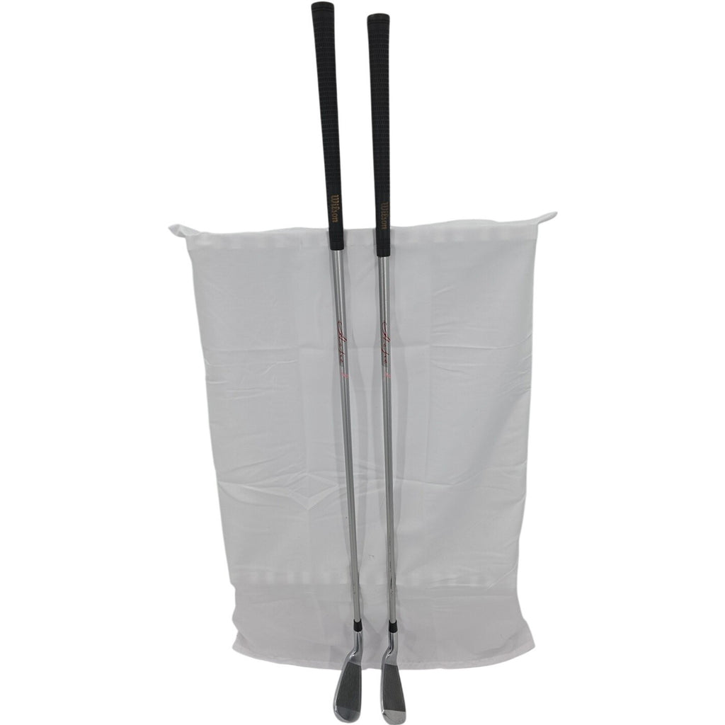The Wilson Hope Oversize Ladies RH 8-9 Iron Golf Club Bundle features a blade head shape with a silver color. It has a mid-high spin, high launch, and low kickpoint, making it ideal for right-handed female golfers with a Ladies flex. The graphite shafts provide a lightweight feel and added distance on the golf course. With a standard lie angle and D1 swing weight, these Wilson Hope irons are designed for optimal performance and precision.