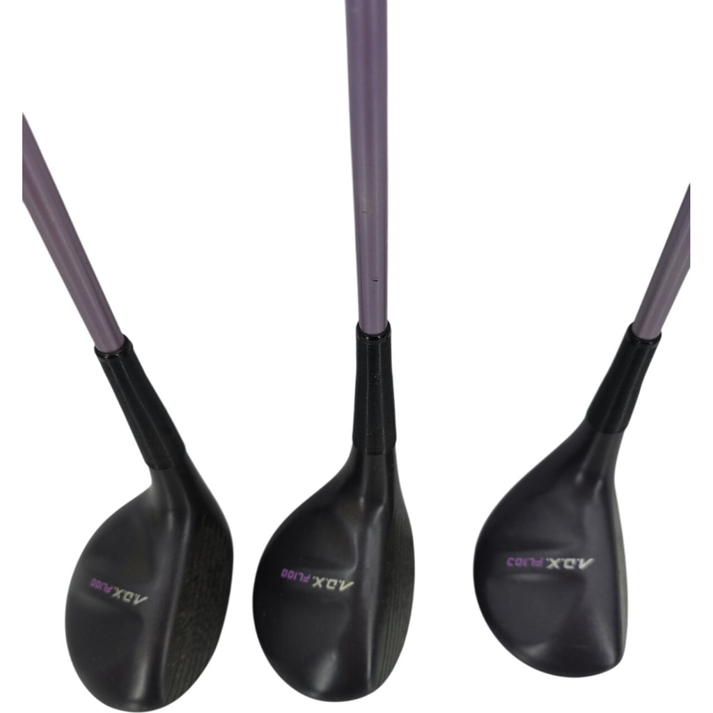 The Yonex ADX FL100 3 5 & 7 Fairway Wood Golf Clubs Bundle is a set of three right-handed fairway woods designed specifically for ladies with a Ladies flex graphite shaft. The clubs feature a standard lie angle for optimal performance on the golf course. Made by the reputable brand Yonex, these clubs offer quality and reliability for golfers looking to improve their game from the fairway. With a Golf Pride grip for added comfort and control, this bundle is ideal for female golfers looking to enhance their long game.